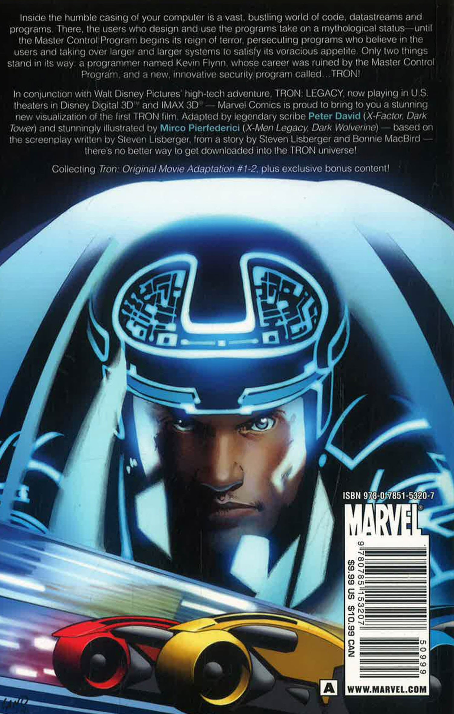 In anticipation of Walt Disney Pictures' high-tech adventure, TRON: LEGACY, which hits U.S. theaters in Disney Digital 3D and IMAX 3D on December 17, 2010 - Marvel Comics is proud to bring you a stunning new visualization of the first TRON film. Adapted by legendary scribe PETER DAVID (X-Factor, The Dark Tower) and stunningly illustrated by MIRCO PIERFEDERICI (X-Men Legacy, Dark Wolverine)!