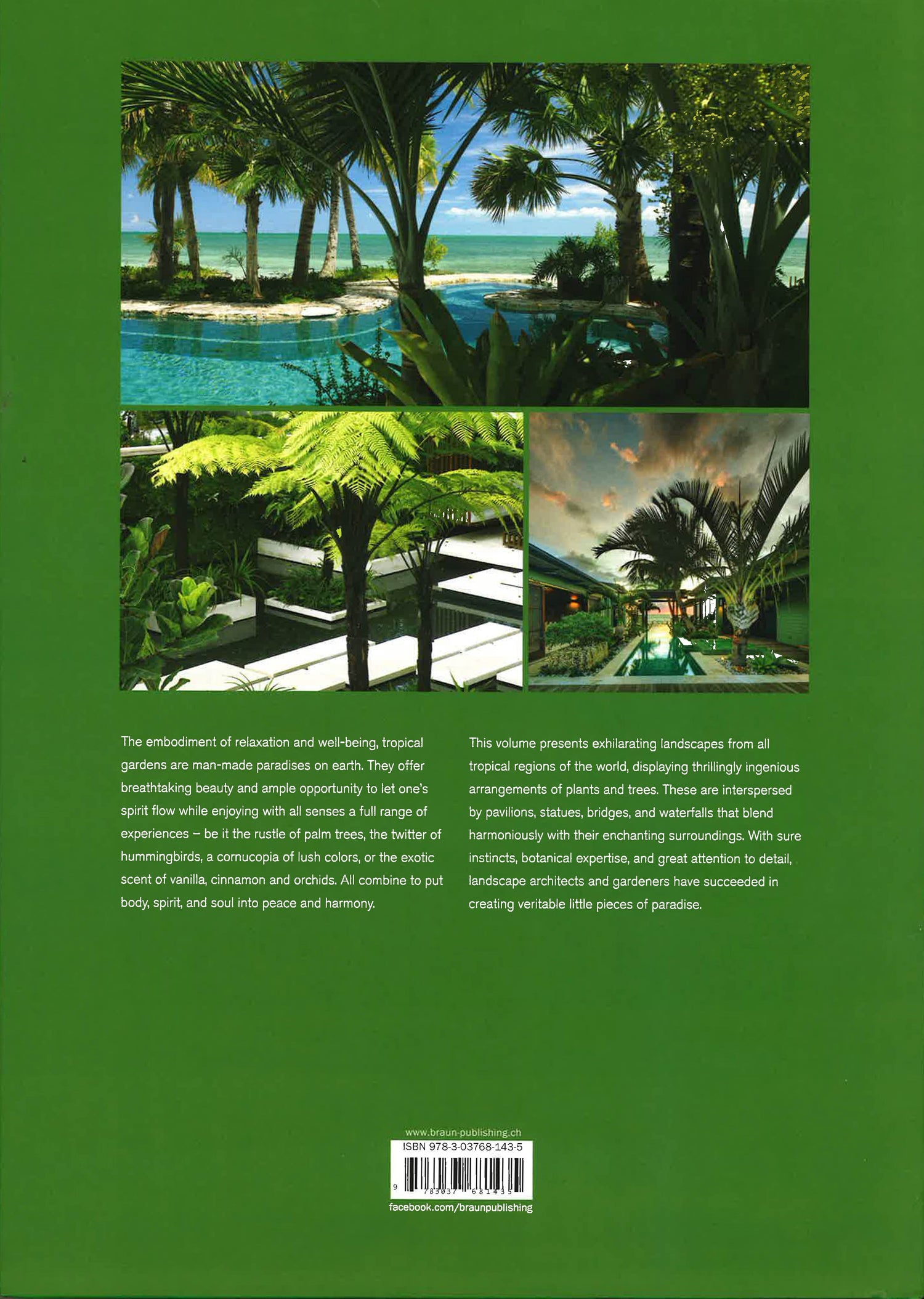 Tropical gardens are man-made paradises on earth: The seductive perfume of exotic flowers, gently splashing water and unimaginable shades of colors provide the beholder with the setting for a dream. Since many are privately owned, this publication allows readers to look behind the gates and to discover the stunning beauty of some of the most magnificent tropical gardens of the world. These veritable lands of wonder betray the sure instinct and eye for details as well as the botanical knowledge of their landscape architects and gardeners. In addition to the creative arrangement of plants and trees, lakes and creeks with other natural treasures, the selected gardens show numerous ways of how added elements such as bridges, gazebos and garden furniture enhance the enchanting environment and accommodate the human visitor.