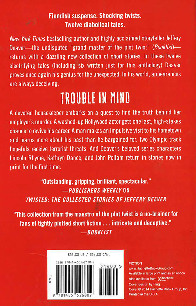 Twelve diabolical tales. New York Times bestselling author and highly acclaimed storyteller Jeffery Deaver-the undisputed "grand master of the plot twist" (Booklist)-returns with a dazzling new collection of short stories. In these twelve electrifying tales (including six written just for this anthology) Deaver proves once again his genius for the unexpected-in his world, appearances are always deceiving. A devoted housekeeper embarks on a quest to find the truth behind her employer's murder. A washed-up Hollywood actor gets one last, high-stakes chance to revive his career. A man makes an impulsive visit to his hometown, and learns more about his past than he bargained for. Two Olympic track hopefuls receive terrorist threats. And Deaver's beloved series characters Lincoln Rhyme, Kathryn Dance, and John Pellam return in stories now in print for the first time.