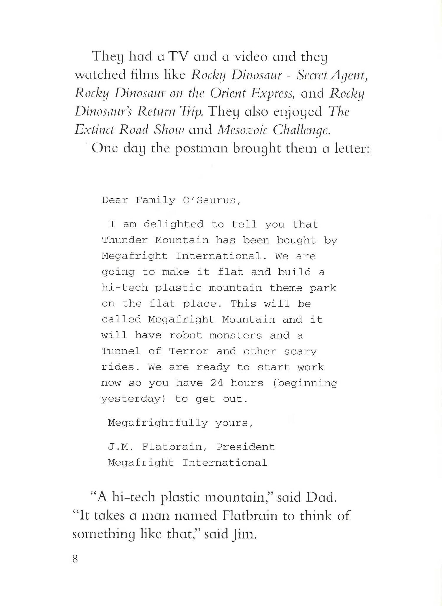When Mr Flatbrain flattens their mountain to make way for a plastic mountain theme park, the O'Saurus family is not defeated.