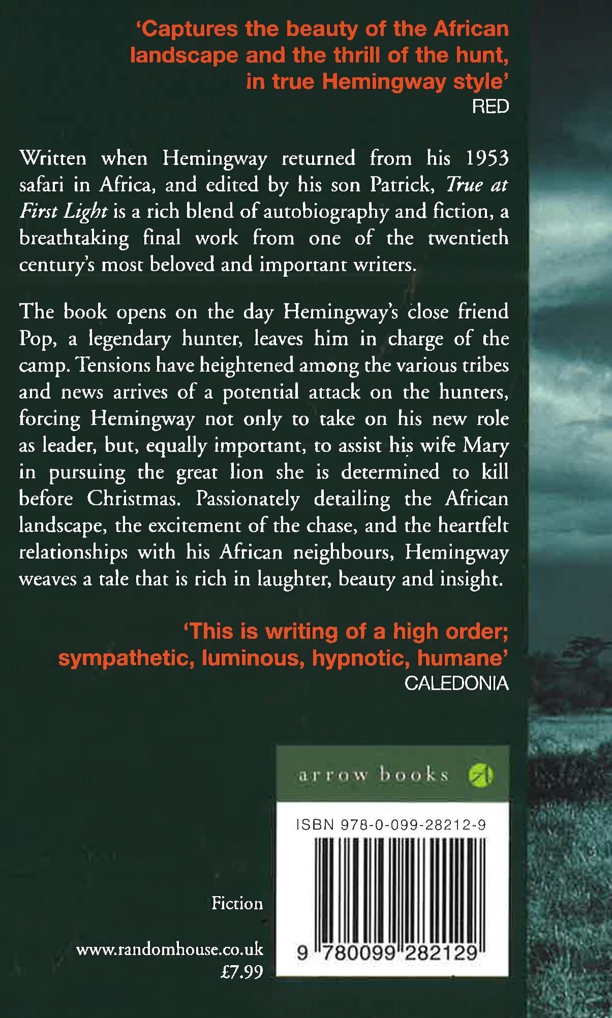 Written when Hemingway returned from his 1953 safari, and edited by his son Patrick, True At First Light is a rich blend of autobiography and fiction, a breathtaking final work from one of this century's most beloved and important writers.