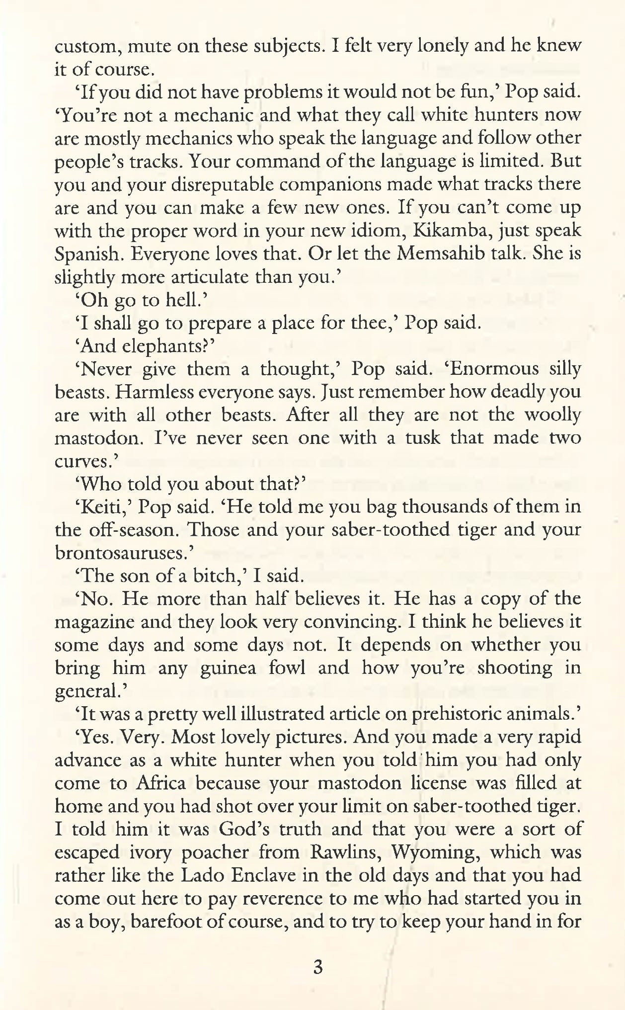 The book opens on the day Hemingway's close friend Pop, a legendary hunter, leaves him in charge of the camp. Tensions have heightened among the various tribes and news arrives of a potential attack on the hunters, forcing Hemingway not only to take on his new role of leader but, equally important, to assist his wife Mary in pursuing the great lion she is determined to kill before Christmas. Passionately detailing the African landscape, the excitement of the chase, and the heartfelt relationships with his African neighbours, Hemingway, a master of dramatic fiction, weaves a tale that is rich in laughter, beauty and insight.