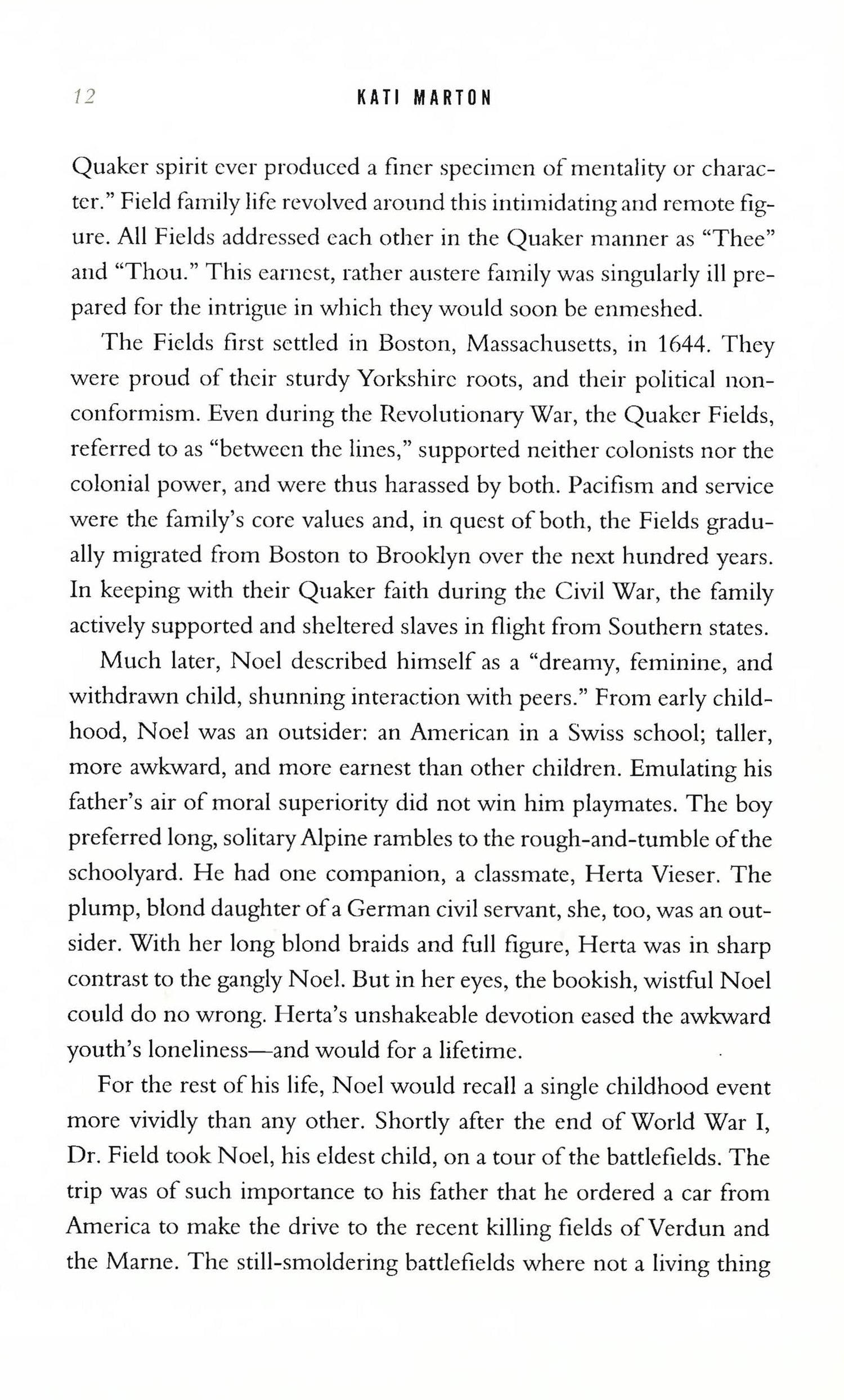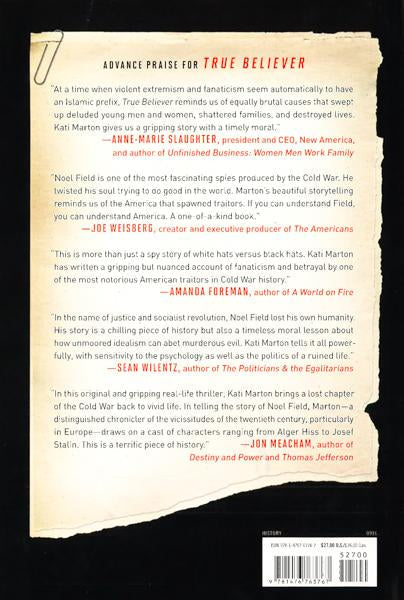 True Believer reveals the life of Noel Field, an American who betrayed his country and crushed his family. Field, once a well-meaning and privileged American, spied for Stalin during the 1930s and '40s. Then, a pawn in Stalin’s sinister master strategy, Field was kidnapped and tortured by the KGB and forced to testify against his own Communist comrades.How does an Ivy League-educated, US State Department employee, deeply rooted in American culture and history, become a hardcore Stalinist? The 1930s, when Noel Field joined the secret underground of the International Communist Movement, were a time of national collapse: ten million Americans unemployed, rampant racism, retreat from the world just as fascism was gaining ground, and Washington - pre FDR - parched of fresh ideas. Communism promised the righting of social and political wrongs and many in Field’s generation were seduced by its siren song. Few, however, went as far as Noel Field in betraying their own country.With a reporter’s eye for detail, and a historian’s grasp of the cataclysmic events of the twentieth century, Kati Marton captures Field’s riveting quest for a life of meaning that went horribly wrong. True Believer is supported by unprecedented access to Field family correspondence, Soviet Secret Police records, and reporting on key players from Alger Hiss, CIA Director Allen Dulles, and World War II spy master, “Wild Bill” Donovan—to the most sinister of all: Josef Stalin. A story of another time, this is a tale relevant for all times.