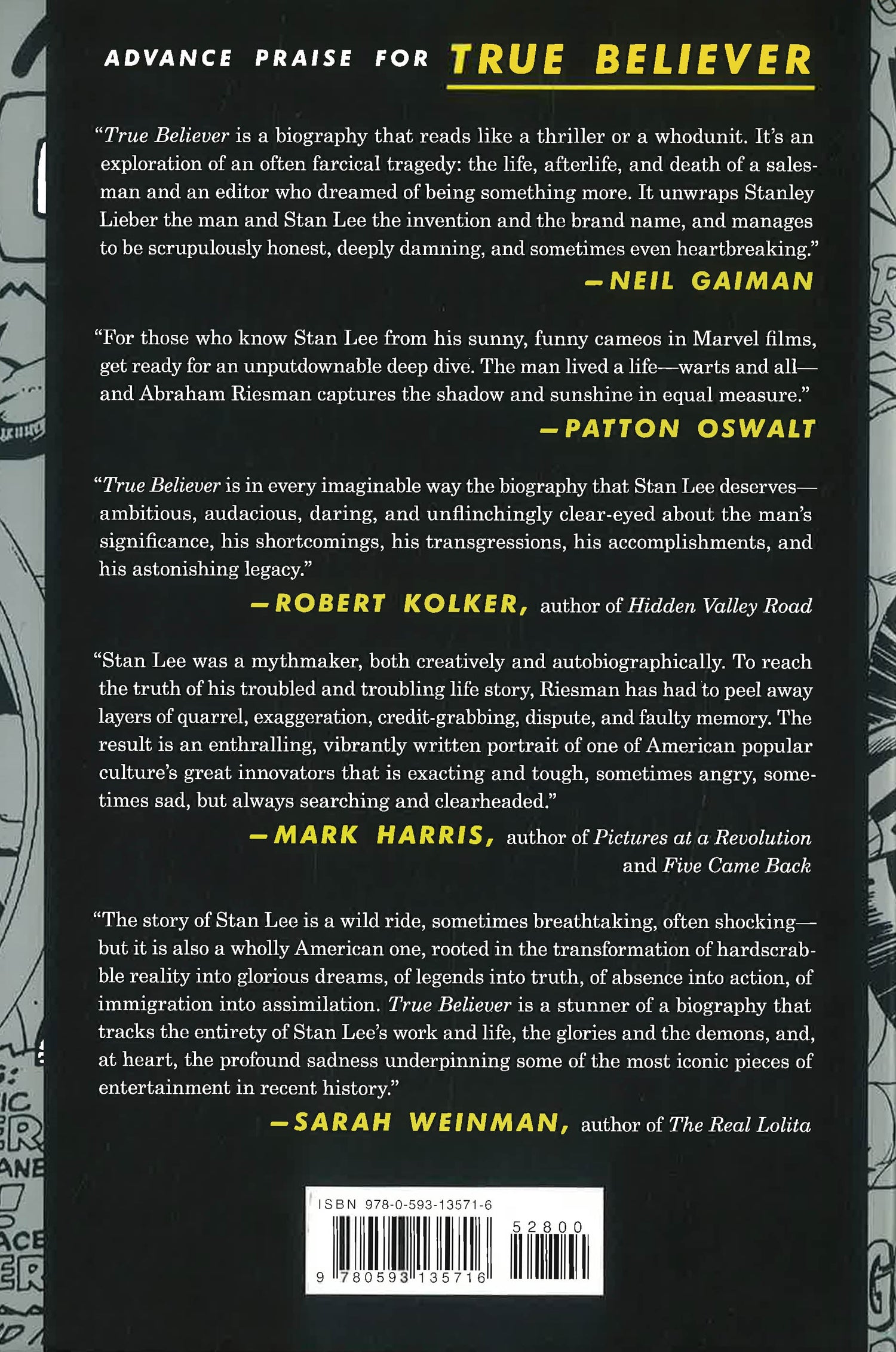 The definitive, revelatory biography of Marvel Comics icon Stan Lee, a writer and entrepreneur who reshaped global pop culture--at a steep personal cost /"A biography that reads like a thriller or a whodunit . . . scrupulously honest, deeply damning, and sometimes even heartbreaking."--Neil Gaiman /Stan Lee--born Stanley Martin Lieber in 1922--is one of the most beloved and influential entertainers to emerge from the twentieth century. He served as head editor of Marvel for three decades and, in that time, launched more pieces of internationally recognizable intellectual property than anyone other than Walt Disney: Spider-Man, the Avengers, the X-Men, Black Panther, the Incredible Hulk, Iron Man, Thor . . . the list seems to never end. On top of that, his carnival-barker marketing prowess more or less single-handedly saved the comic-book industry and superhero fiction. Without him, the global entertainment industry would be wildly different--and a great deal poorer. /But Lee's unprecedented career was also filled with spectacular failures, controversy, and bitter disputes. Lee was dogged by accusations from key collaborators such as Jack Kirby and Steve Ditko over who really created Marvel's signature characters--iconic figures for whom Lee had always been suspected of taking more than his proper share of credit. A major business venture, Stan Lee Media, resulted in stock manipulation, bankruptcy, and criminal charges. A second one, POW! Entertainment, has been repeatedly accused of malfeasance and deceit. And in his final years, after the death of his beloved wife, Joan, rumors swirled that Lee was a virtual prisoner in his own home, beset by abusive grifters and issuing cryptic video recordings as a battle to control his fortune and legacy ensued. /Abraham Riesman is a veteran culture reporter who has conducted more than 150 new interviews and investigated thousands of pages of private documents, turning up never-before-published revelations about Lee's life and work. Lee's most famous motto was "With great power comes great responsibility." Stretching from the Romanian shtetls of Lee's ancestors to his own final moments in Los Angeles, True Believer chronicles the world-changing triumphs and tragic missteps of an extraordinary life, and leaves it to readers to decide whether Lee lived up to the responsibilities of his own talent.