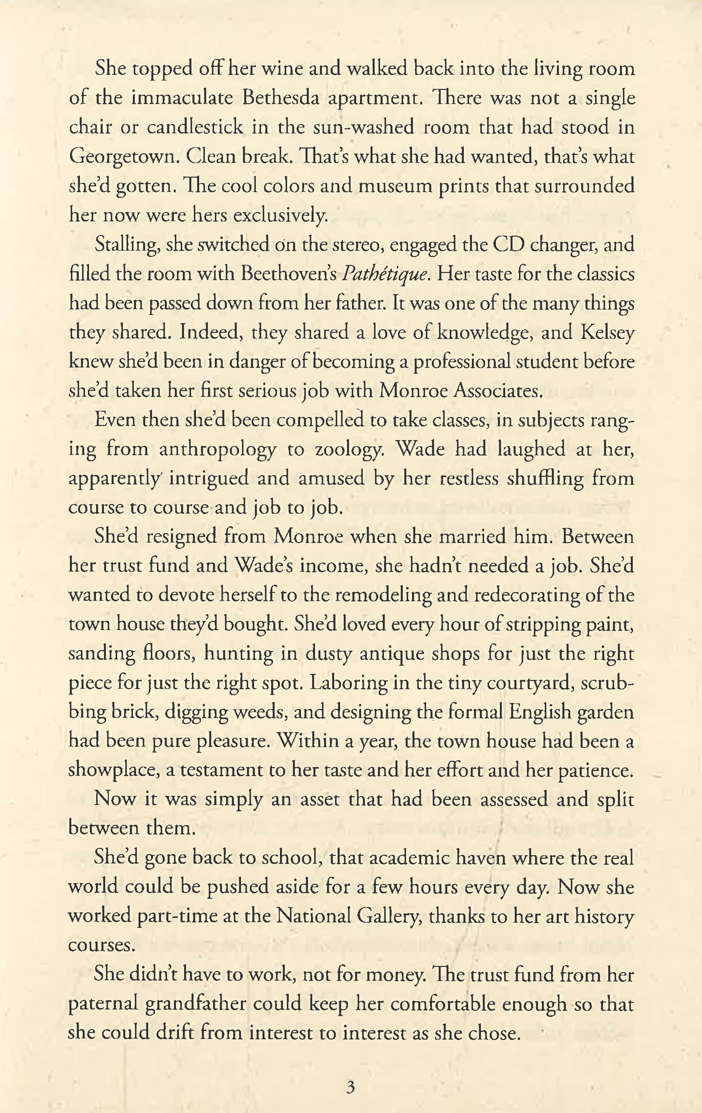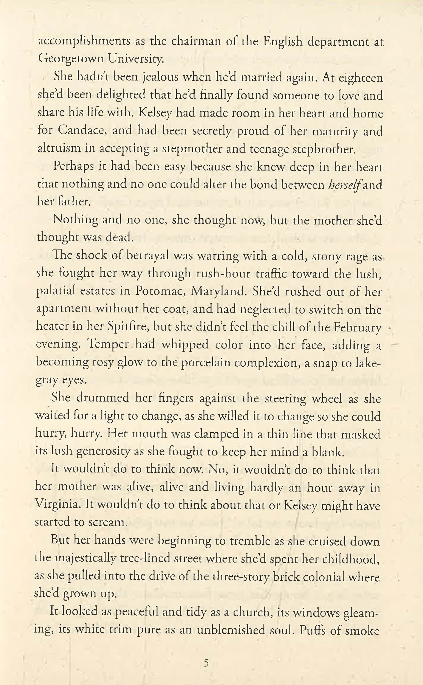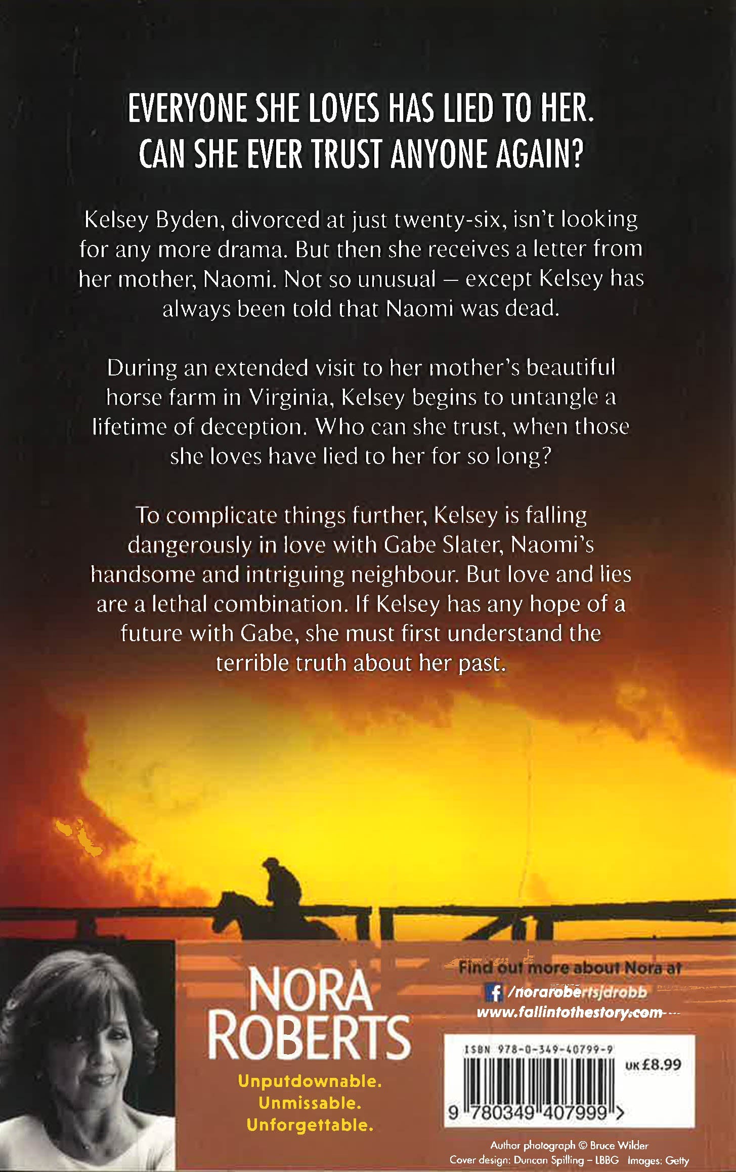 During an extended visit to her mother's beautiful horse farm in Virginia, Kelsey begins to untangle a lifetime of deception. Who can she trust, when those she loves have lied to her for so long?