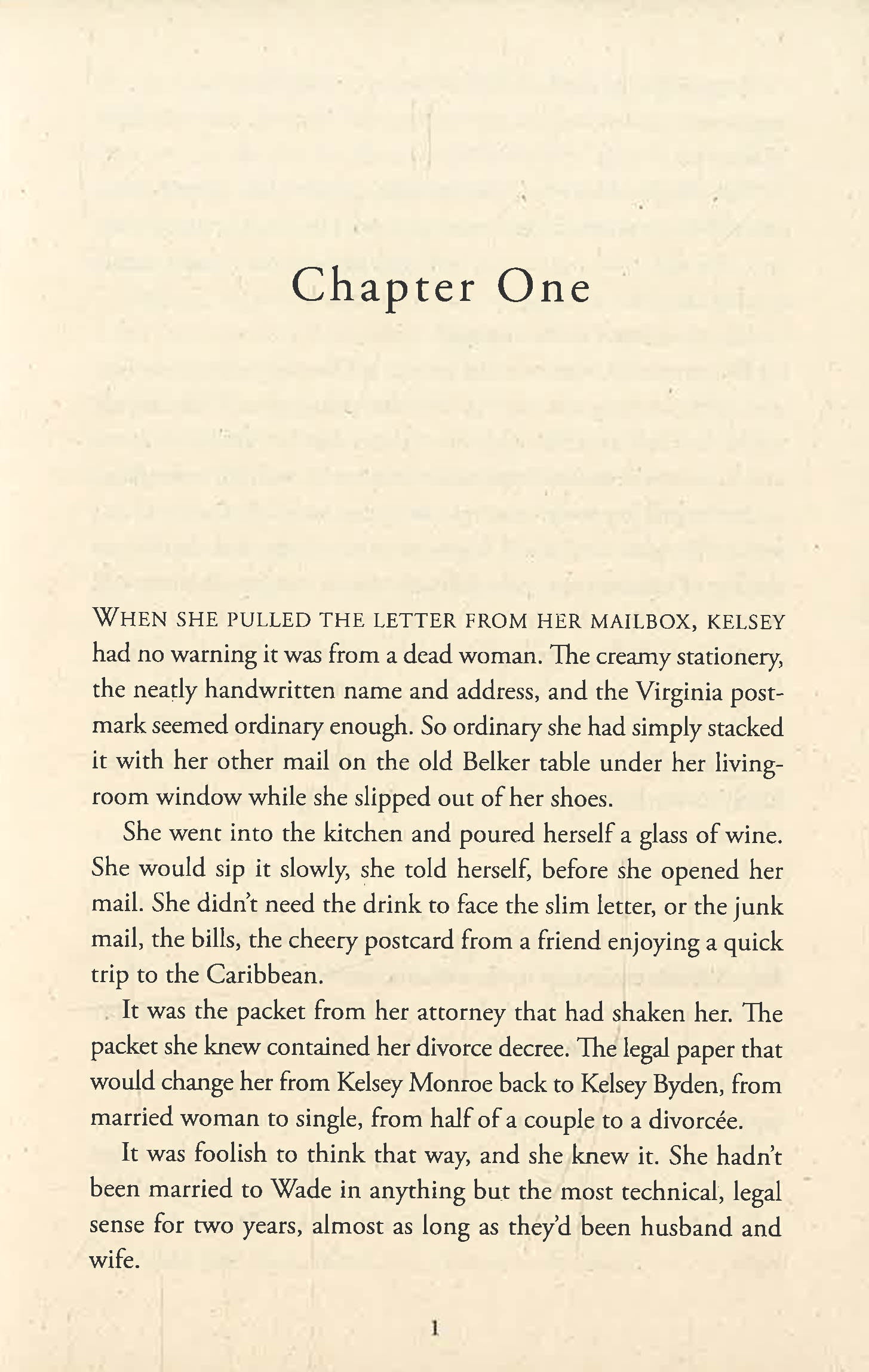 Kelsey Byden, divorced at just twenty-six, isn't looking for any more drama. But then she receives a letter from her mother, Naomi. Not so unusual - except Kelsey has always been told that Naomi was dead . . .