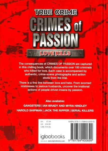 The consequences of CRIMES OF PASSION are captured in this chilling book, which documents over 100 criminals who killed for love. Each case is accompanied by authentic, crime-scene photographs and action shots from the trial. There is a fine line between love and hate. From scorned mistresses to jealous husbands, uncover the irrational actions of people driven insane by passion.