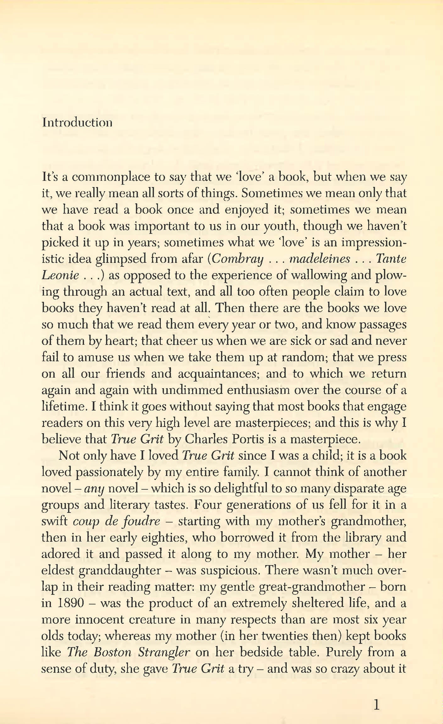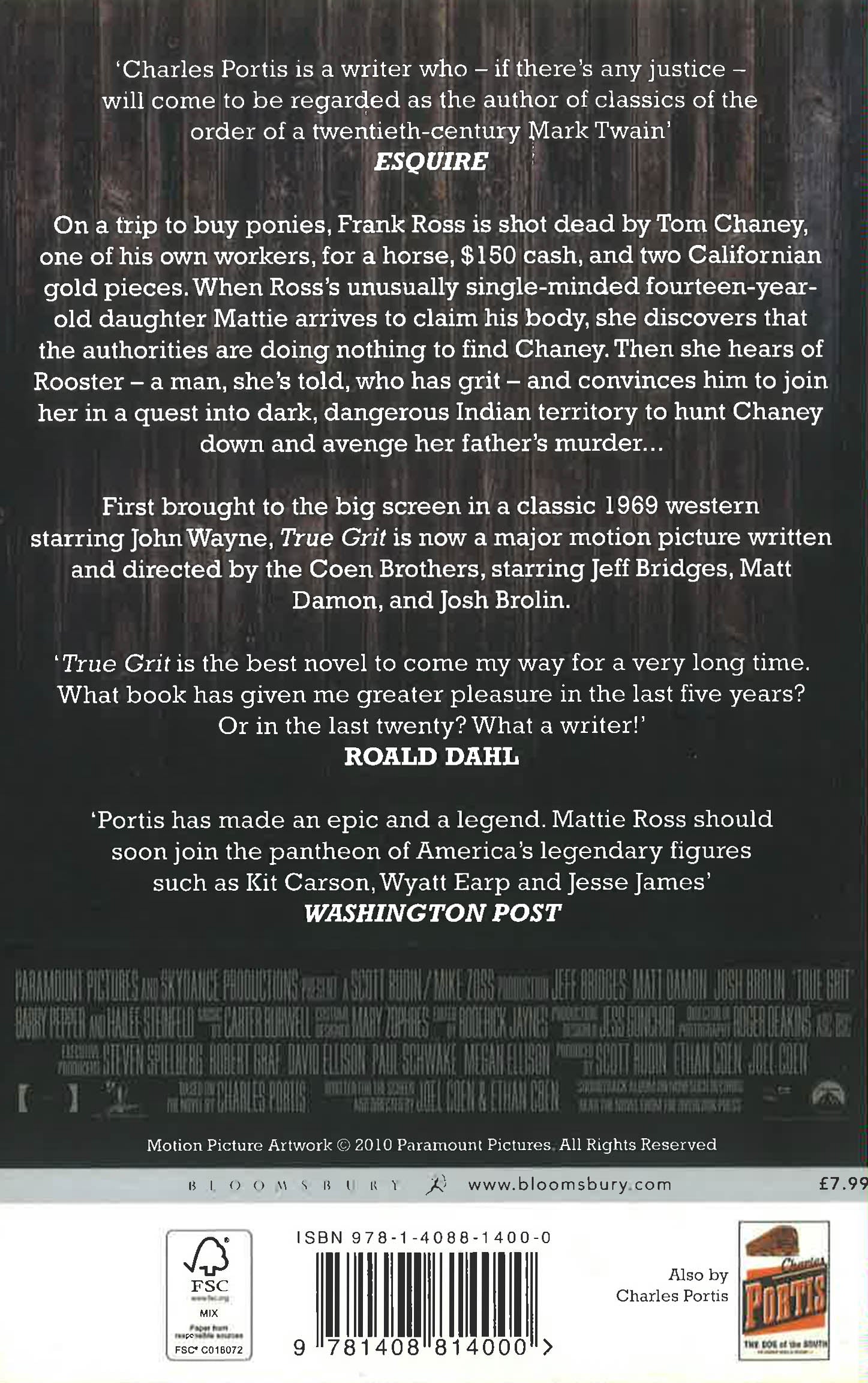 There is no knowing what lies in a man's heart. On a trip to buy ponies, Frank Ross is killed by one of his own workers. Tom Chaney shoots him down in the street for a horse, $150 cash, and two Californian gold pieces. Ross's unusually mature and single-minded fourteen-year-old daughter Mattie travels to claim his body, and finds that the authorities are doing nothing to find Chaney. Then she hears of Rooster - a man, she's told, who has grit - and convinces him to join her in a quest into dark, dangerous Indian territory to hunt Chaney down and avenge her father's murder.