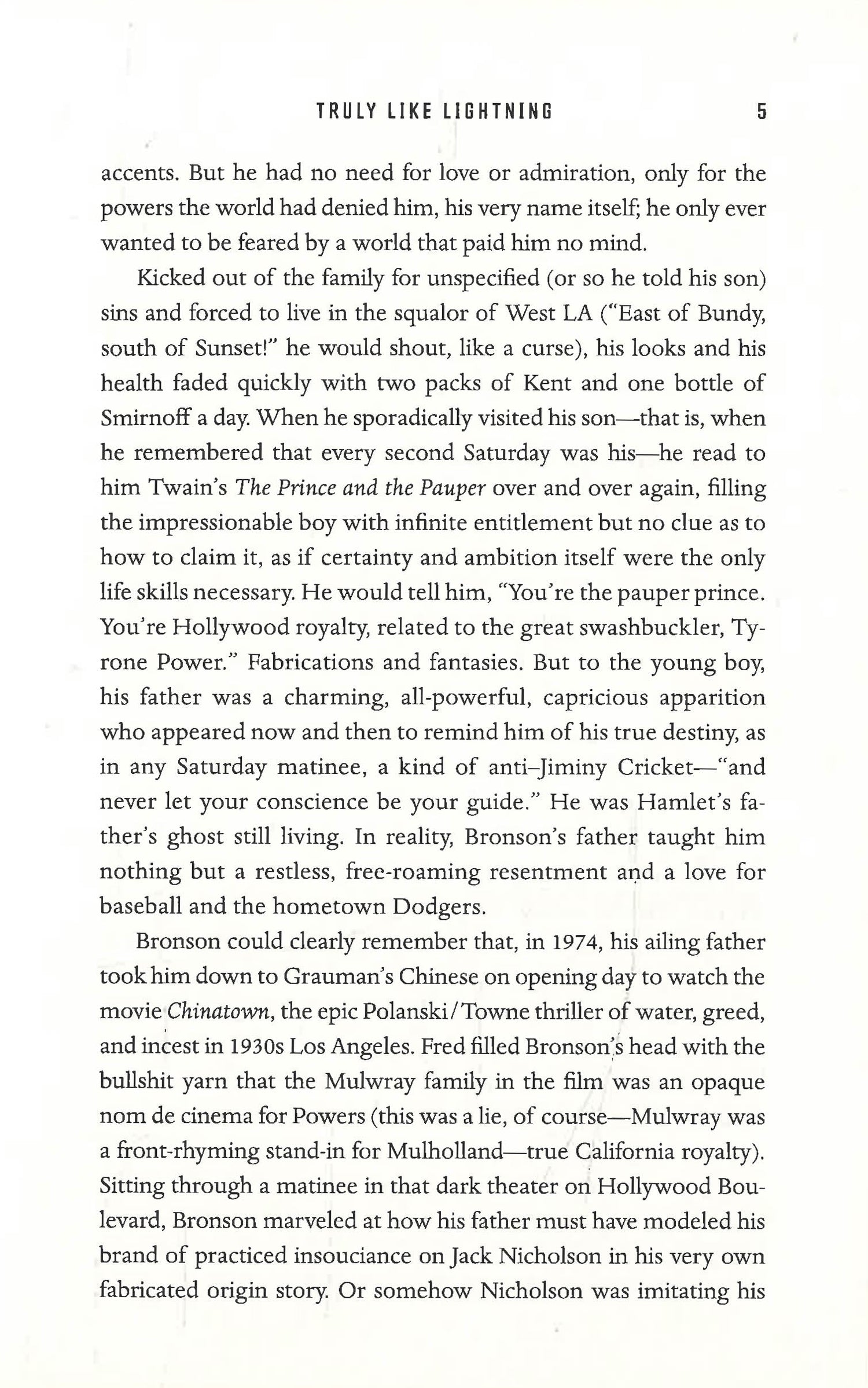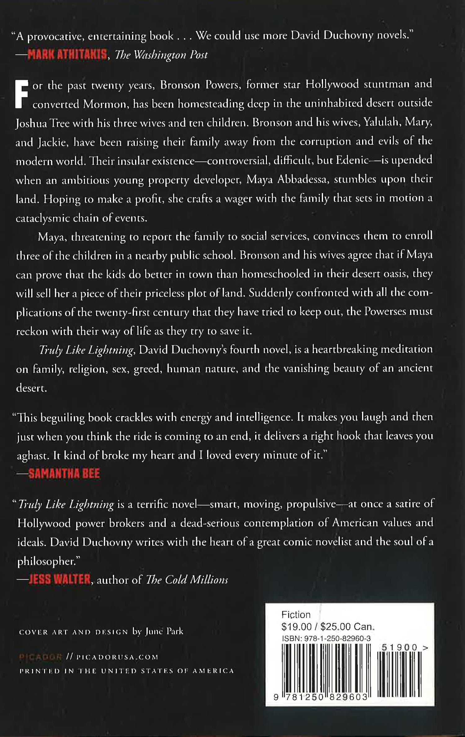 Truly Like Lightning, David Duchovny’s fourth novel, is a heartbreaking meditation on family, religion, sex, greed, human nature, and the vanishing beauty of an ancient desert.