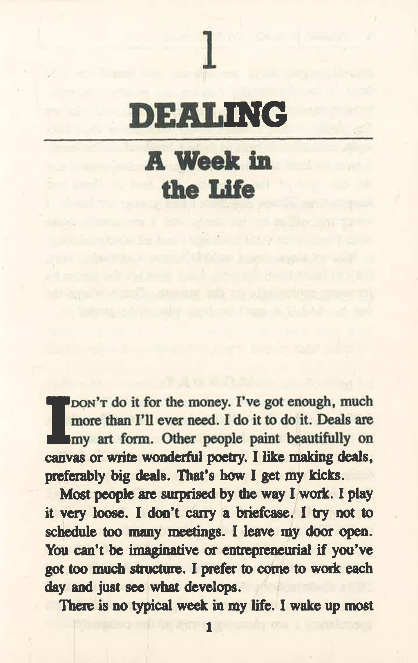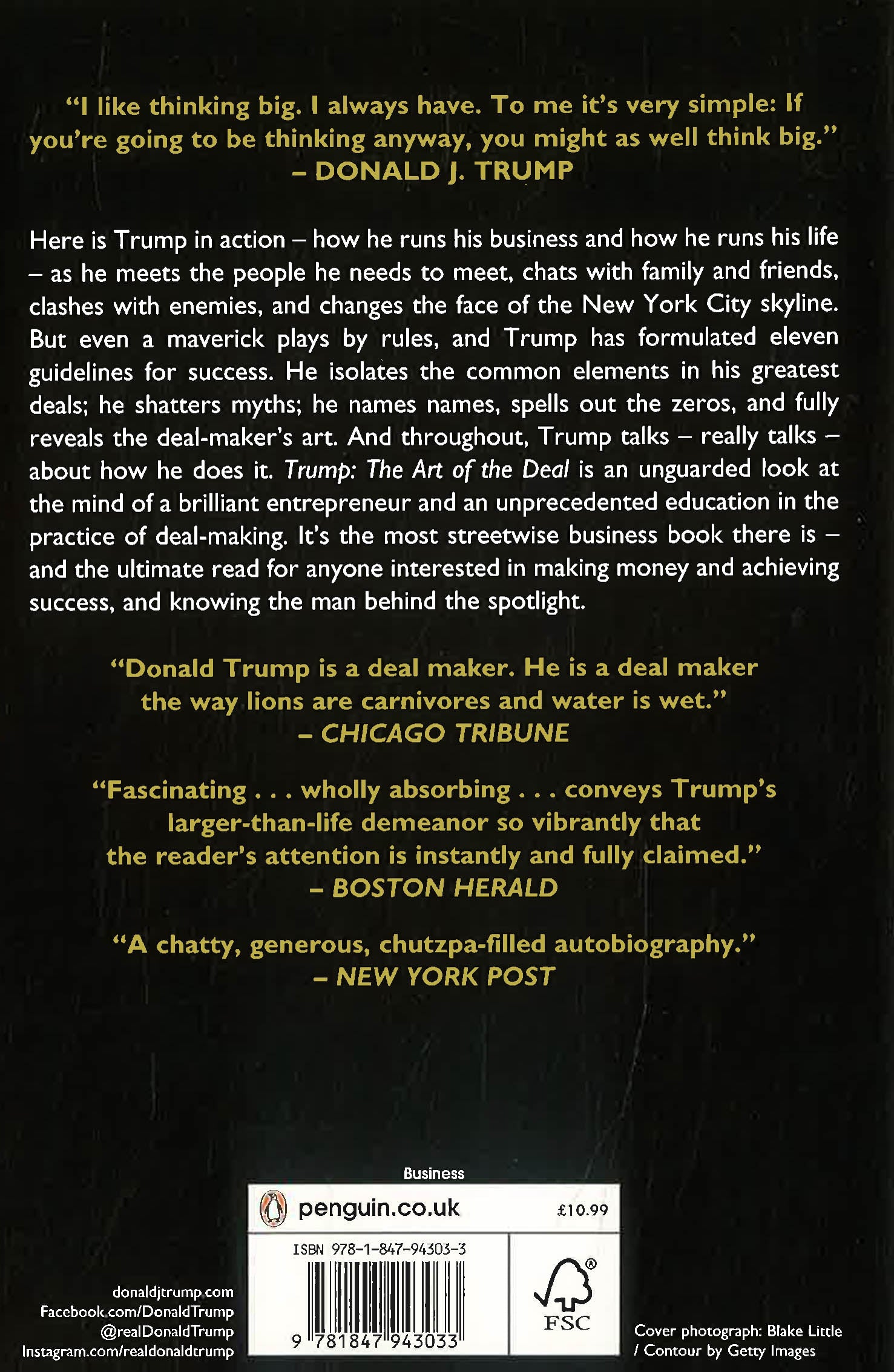 Trump: The Art of the Deal is an unguarded look at the mind of a brilliant entrepreneur and an unprecedented education in the practice of deal-making. It's the most streetwise business book there is – and the ultimate read for anyone interested in making money and achieving success, and knowing the man behind the spotlight.