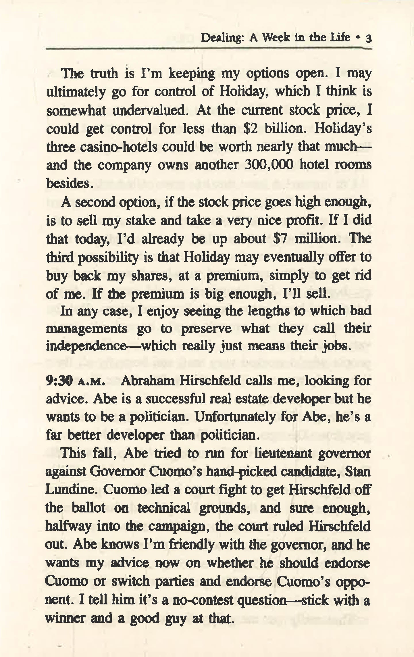 Here is Trump in action – how he runs his business and how he runs his life – as he meets the people he needs to meet, chats with family and friends, clashes with enemies, and changes the face of the New York City skyline.