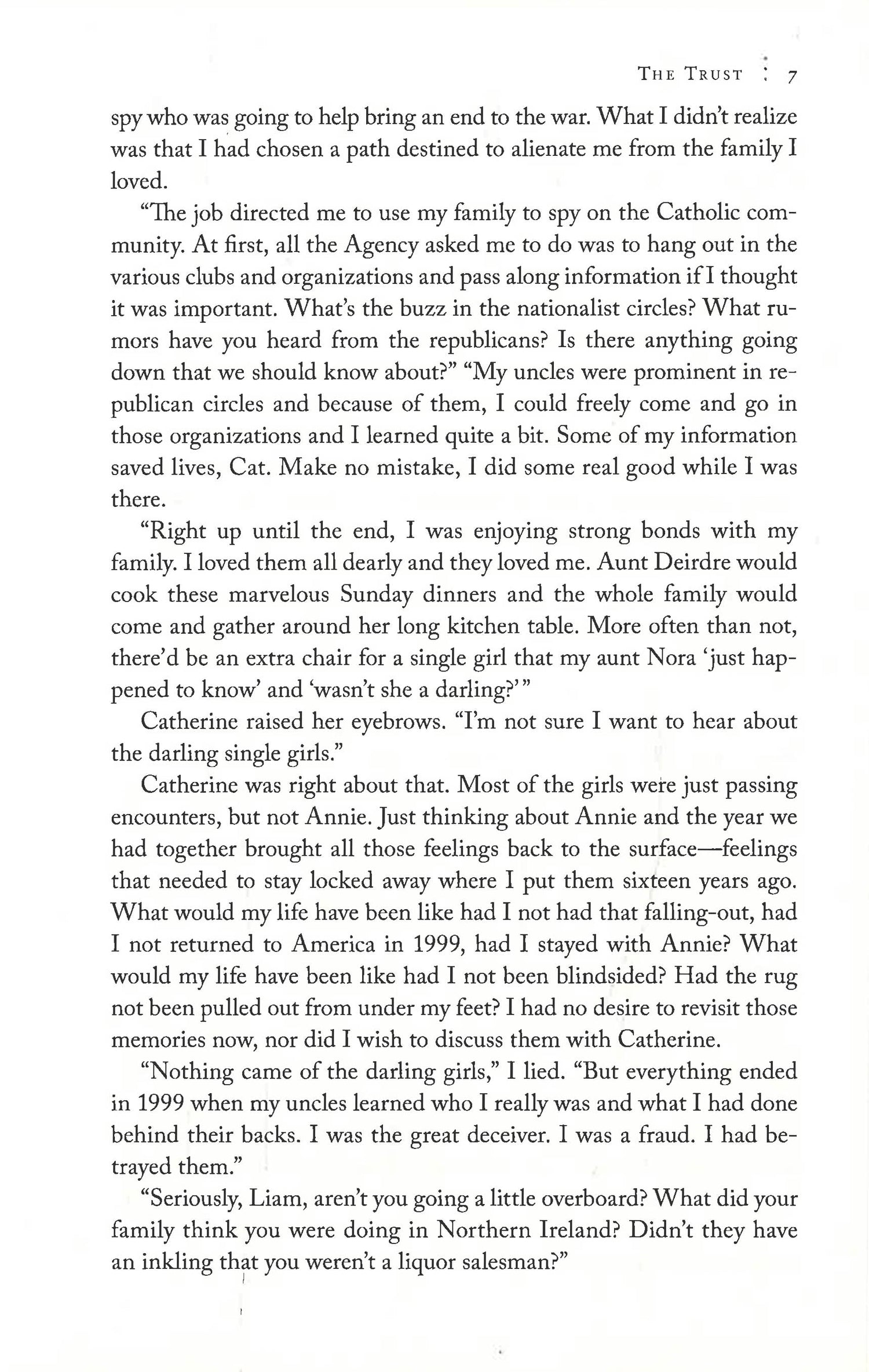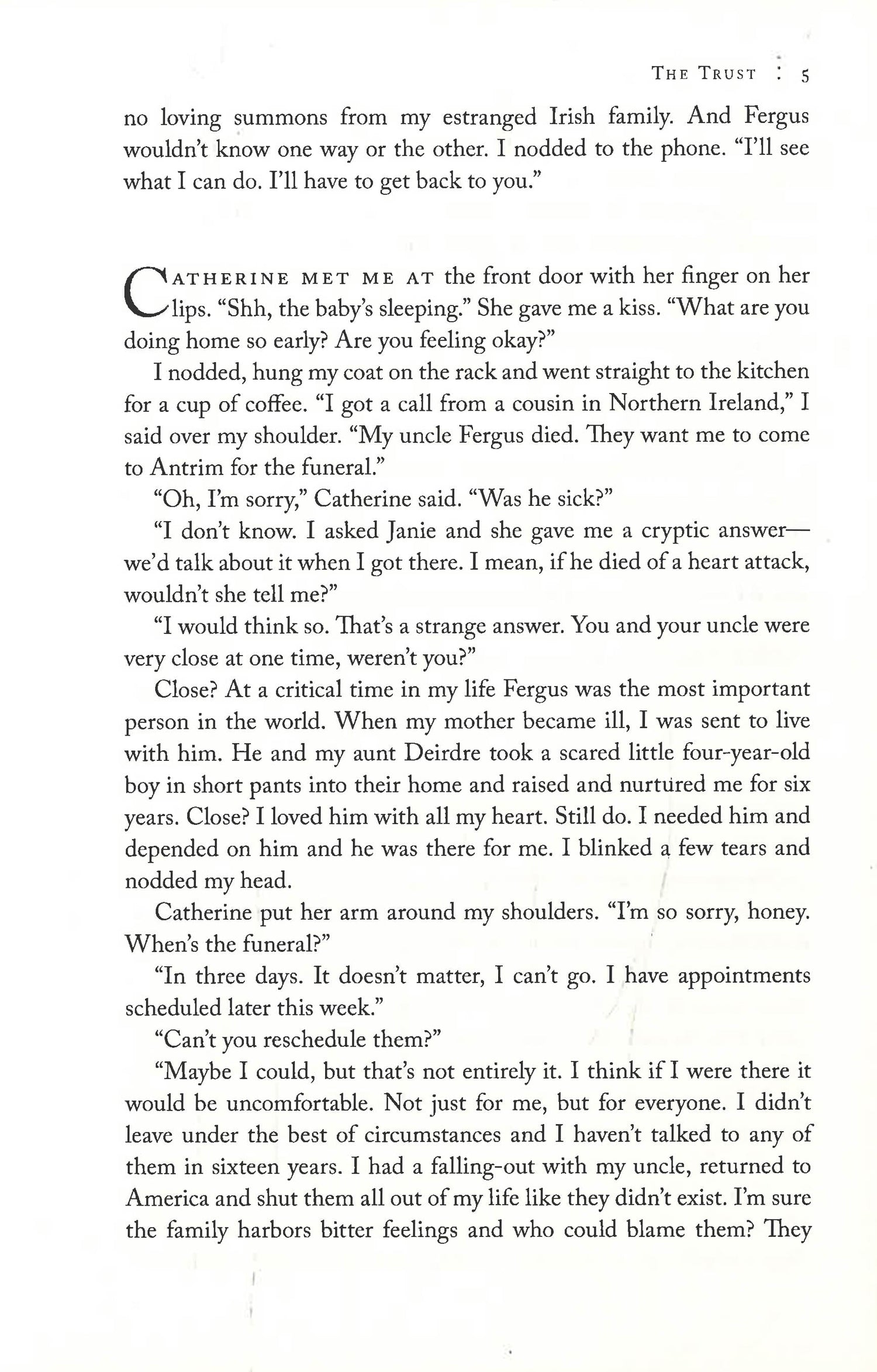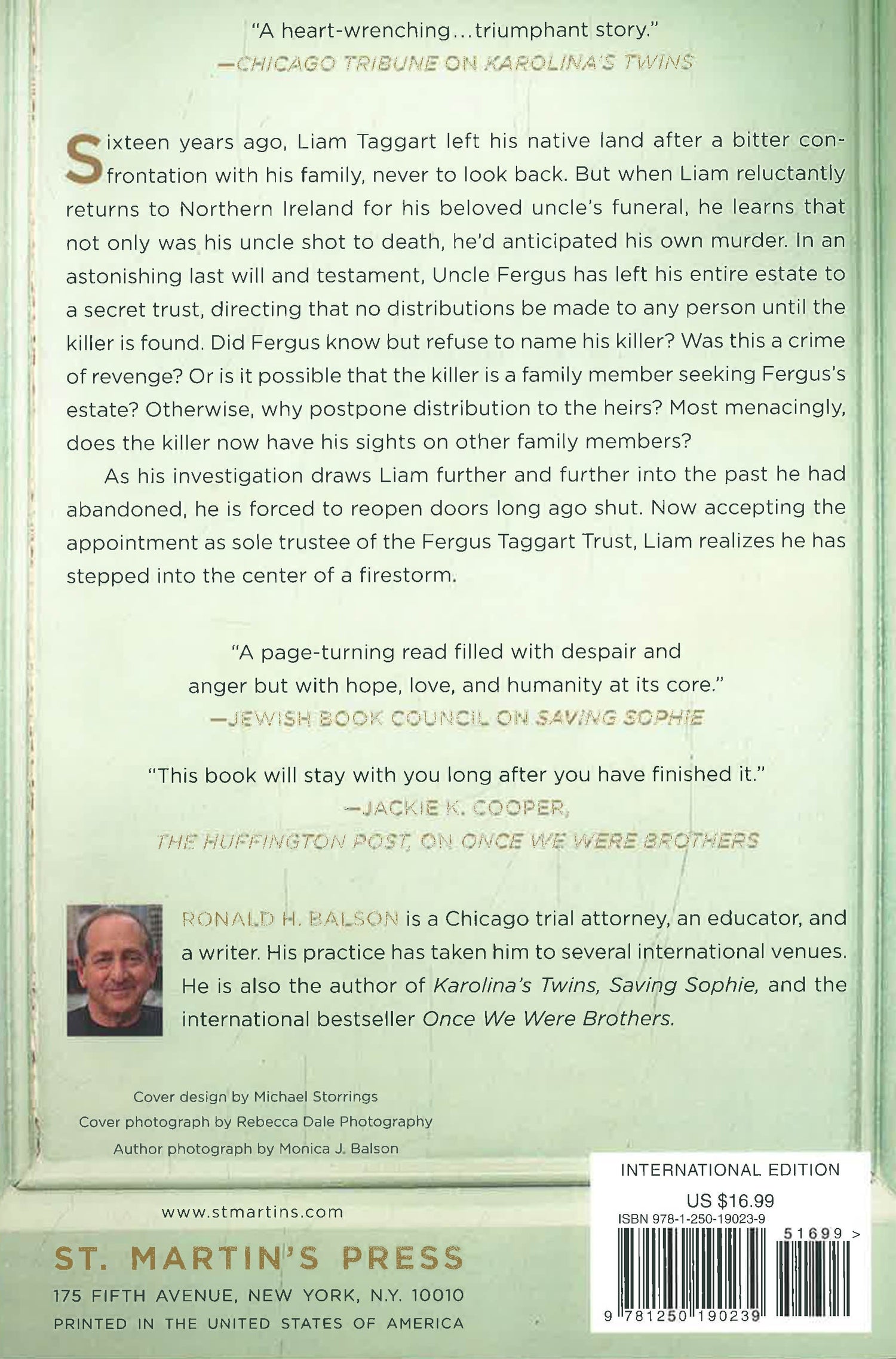As his investigation draws Liam further and further into the past he had abandoned, he is forced to reopen doors long ago shut. Now accepting the appointment as sole trustee of the Fergus Taggart Trust, Liam realizes he has stepped into the center of a firestorm.