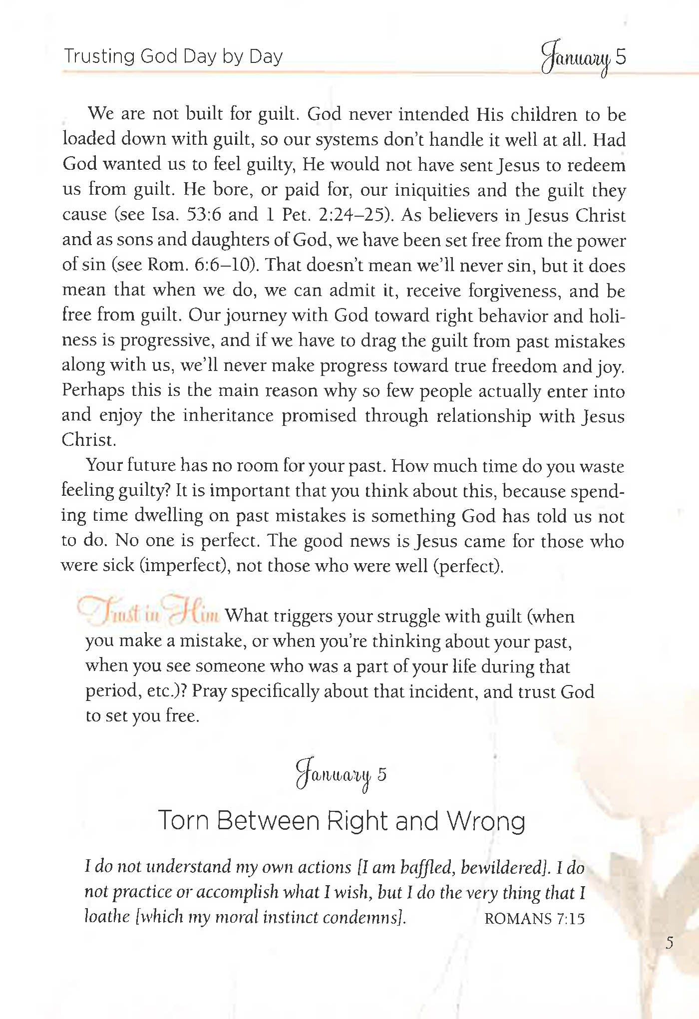 In her dynamic new devotional, Trusting God Day by Day, international speaker and New York Times bestselling author Joyce Meyer provides you with powerful "starting points" for every day of the year. Each day's devotion is filled with practical advice and help from Joyce along with life-changing promises from God's Word that you can quickly and easily apply in your own life.