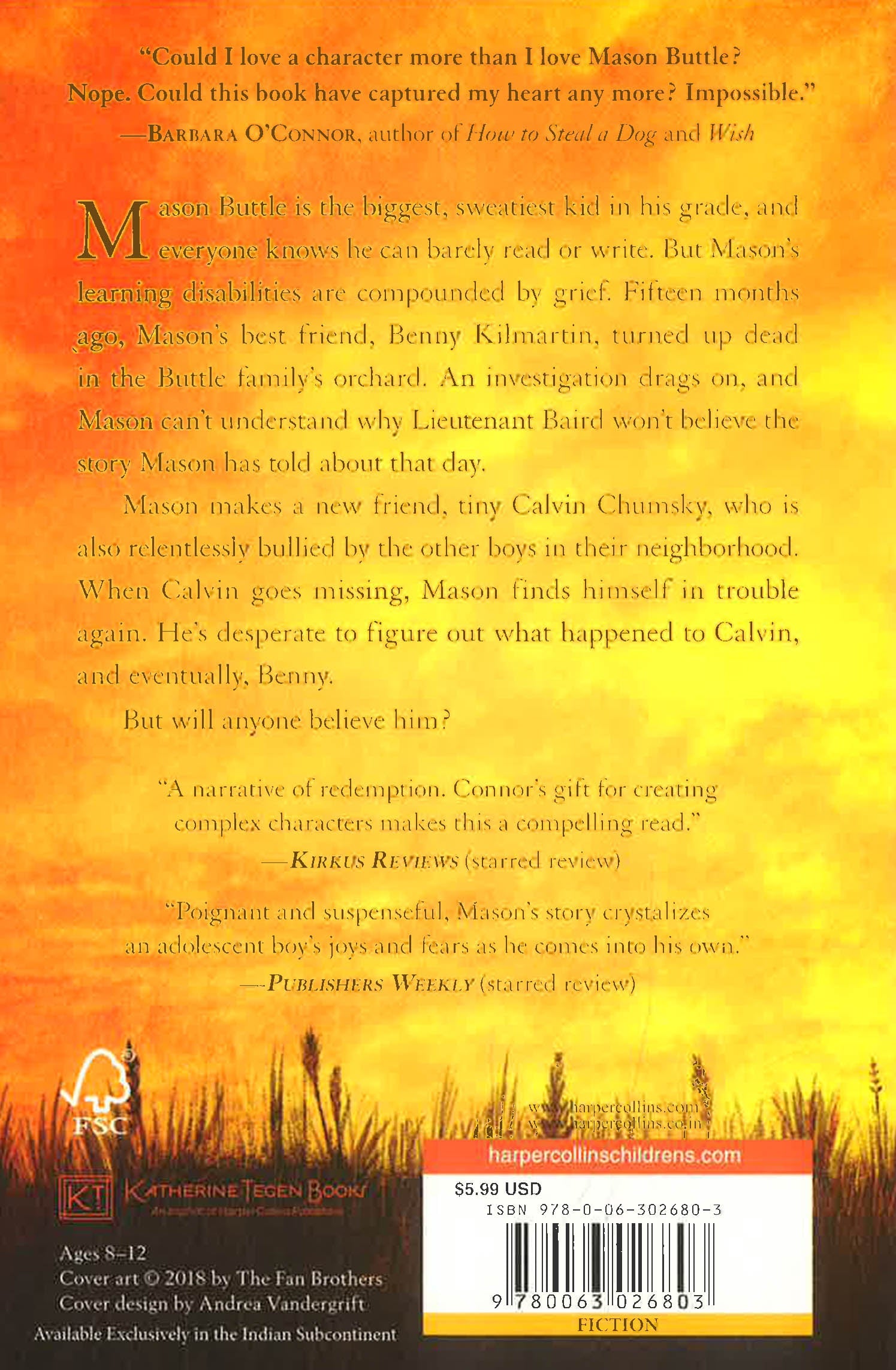 Mason Buttle is the biggest, sweatiest kid in his grade, and everyone knows he can barely read or write. Mason’s learning disabilities are compounded by grief. Fifteen months ago, Mason’s best friend, Benny Kilmartin, turned up dead in the Buttle family’s orchard.