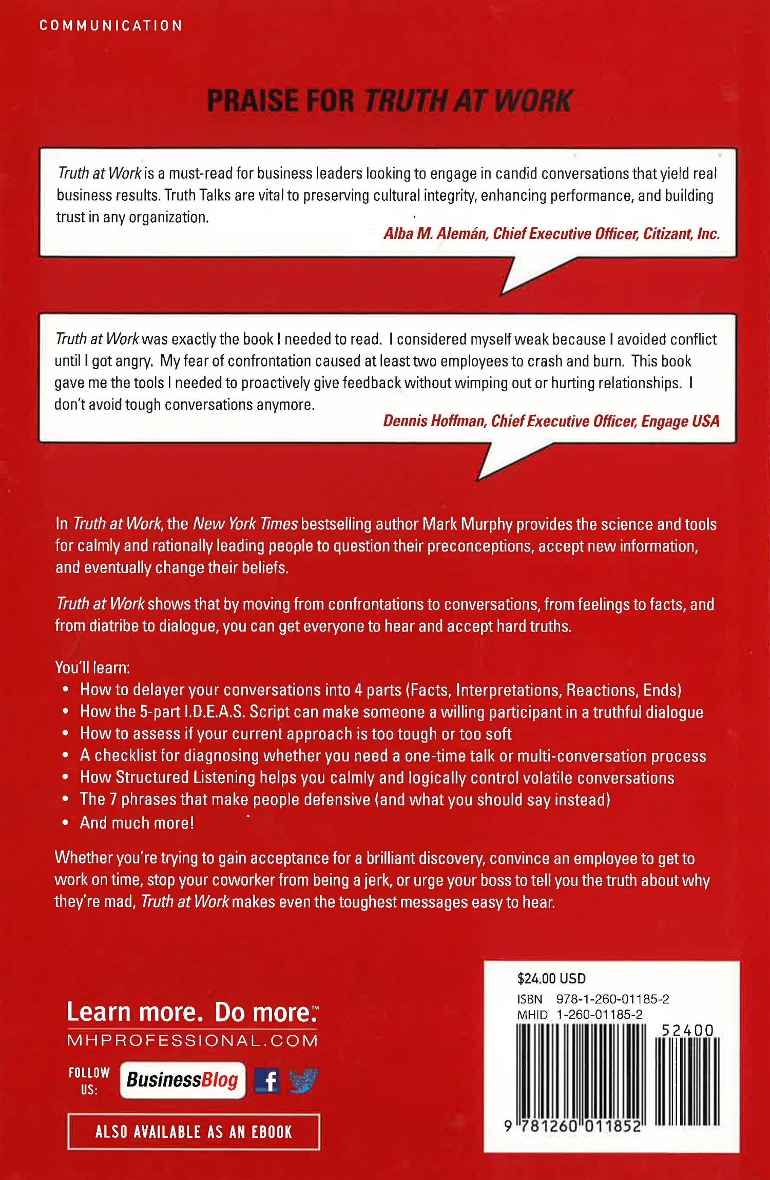 Truth at Work shows that by moving from confrontations to conversations, from feelings to facts, and from diatribe to dialogue, you can get everyone to hear and accept hard truths.