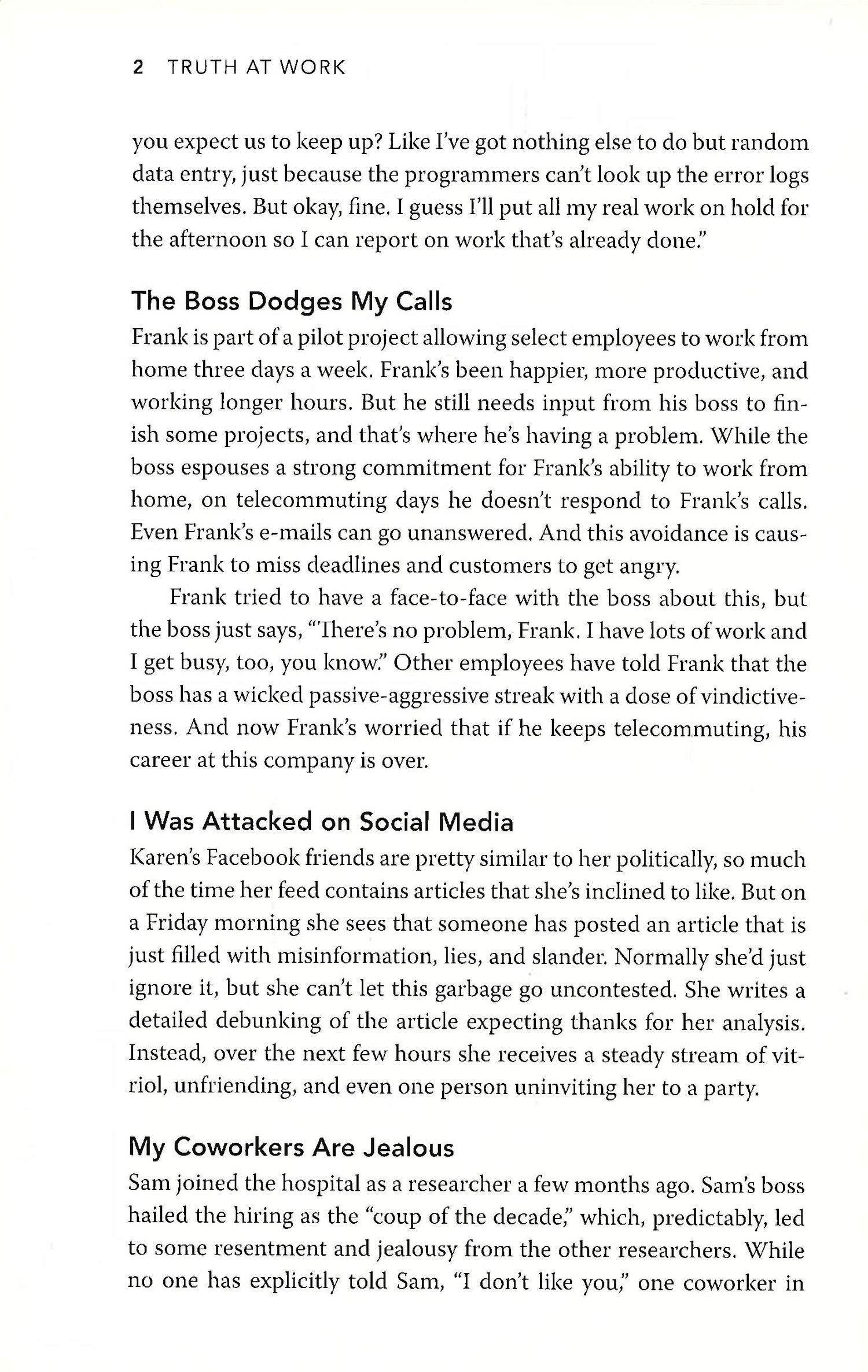Whether you're trying to gain acceptance for a brilliant discovery, convince an employee to get to work on time, stop your coworker from being a jerk or urge your boss to tell you the truth about why they're mad, Truth At Work makes even the toughest messages easy to hear.