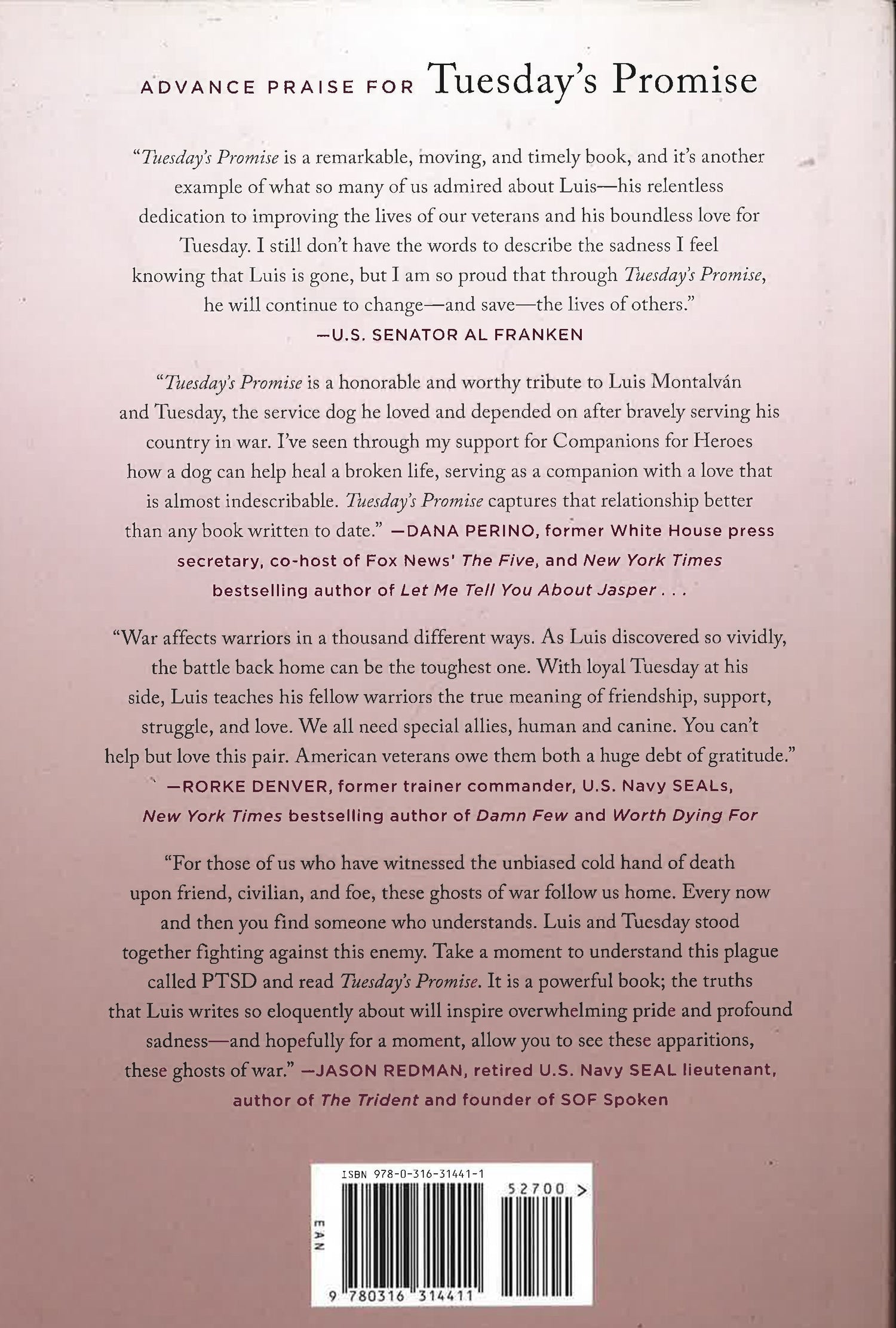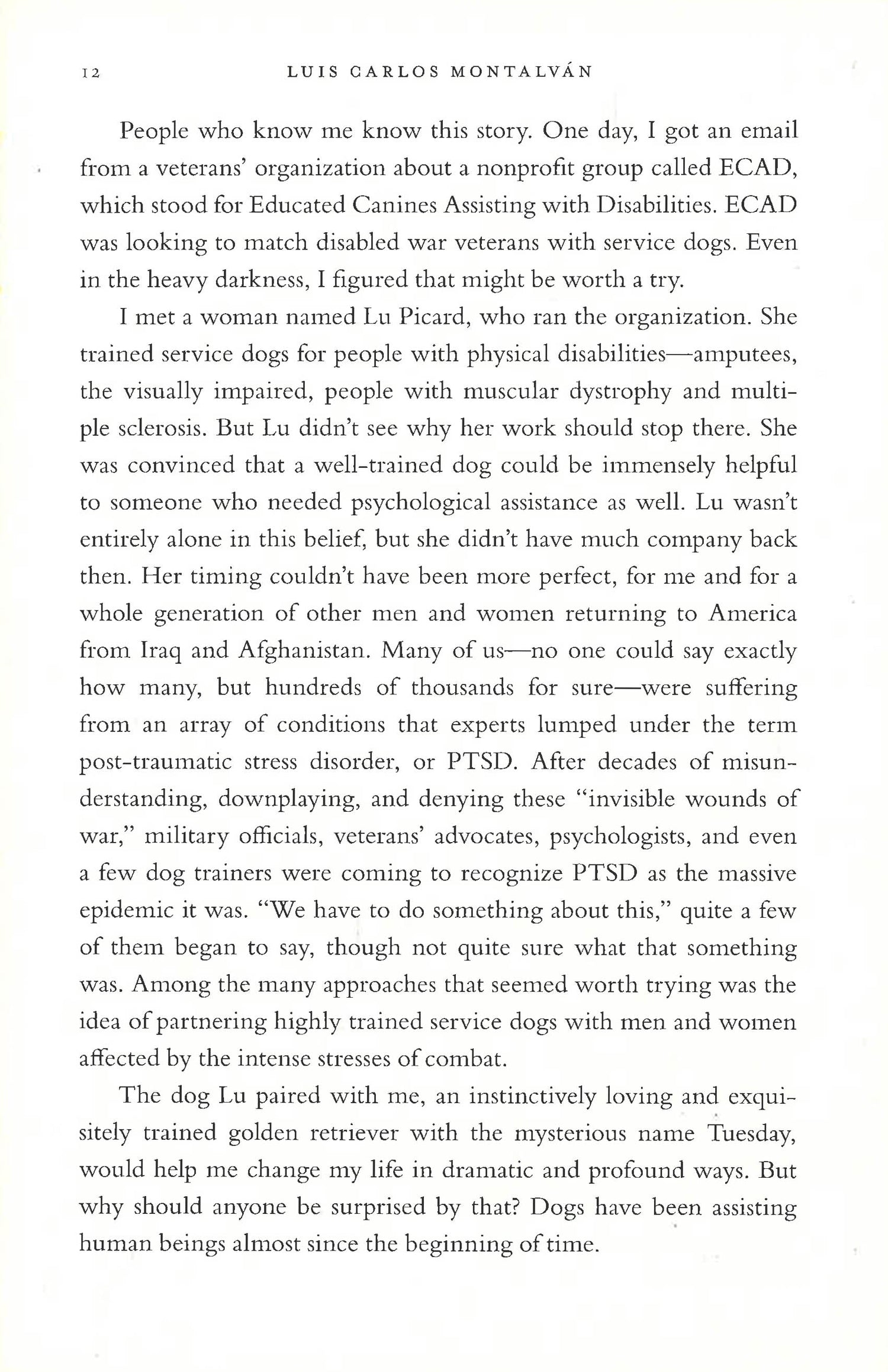 Following the success of his New York Times bestseller, Until Tuesday, Iraq War veteran Luis Carlos Montalván advocated for America's wounded warriors and the healing powers of service dogs. In this spectacular new memoir, Luis and Tuesday brought their healing mission to the next level, showing how these beautifully trained animals could assist soldiers, veterans, and many others with mental and physical disabilities. They rescued a forgotten Tuskegee airman, battled obstinate VA bureaucrats, and provided solace to war heroes coast-to-coast. As Luis and Tuesday celebrated exhilarating victories, a grave obstacle threatened their work. Luis made great progress battling his own PTSD, but his physical wounds got so bad that he was wheelchair-bound. He needed to decide whether to amputate his leg and carry on with a bionic prosthesis. Even as he struggled with dramatic emotional and physical changes, ten-year-old Tuesday was lovingly by his side through it all. Luis' death in December 2016 was another terrible tragedy of the invisible wounds of war. This book was his last letter of love to his best friend, Tuesday, and to veterans, readers, friends, and fellow dog lovers everywhere. Never more timely than now, Tuesday's Promise is an inspiring story of love, service, teamwork, and the remarkable bond between humans and canines.