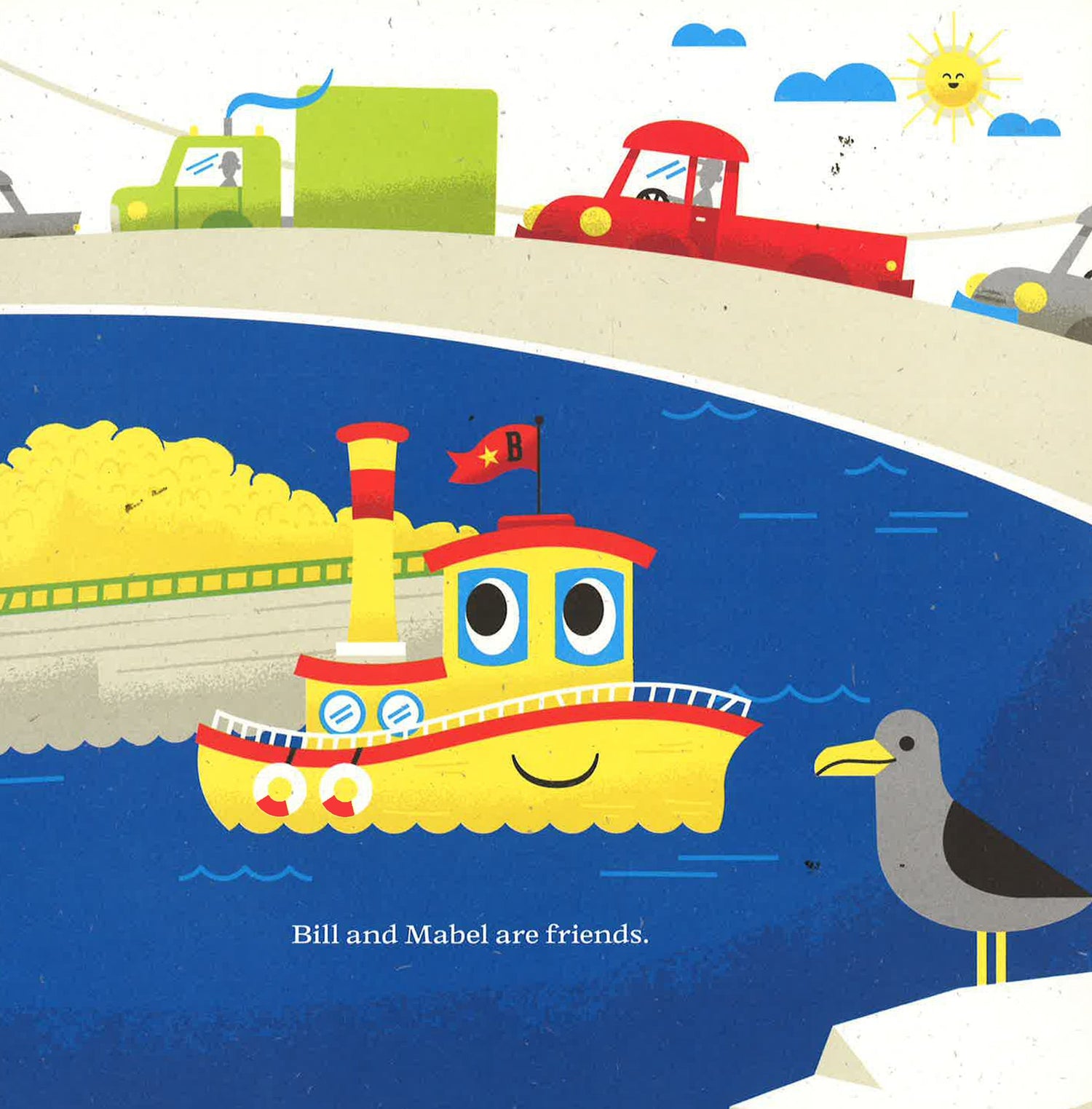 Fans of Little Tug and Chugga-Chugga Choo-Choo will love this lyrical, heartwarming story by Calista Brill, brought to life by Tad Carpenter?s bright and lively illustrations. Perfect for readers who can?t get enough of things that GO! Bill is a tugboat. Mabel is a barge. Together they go up and down the choppy river. The other ships are big and vain. They tease Bill and Mabel. But when a kitten falls in the water, it?s up to Bill and Mabel to save the day!