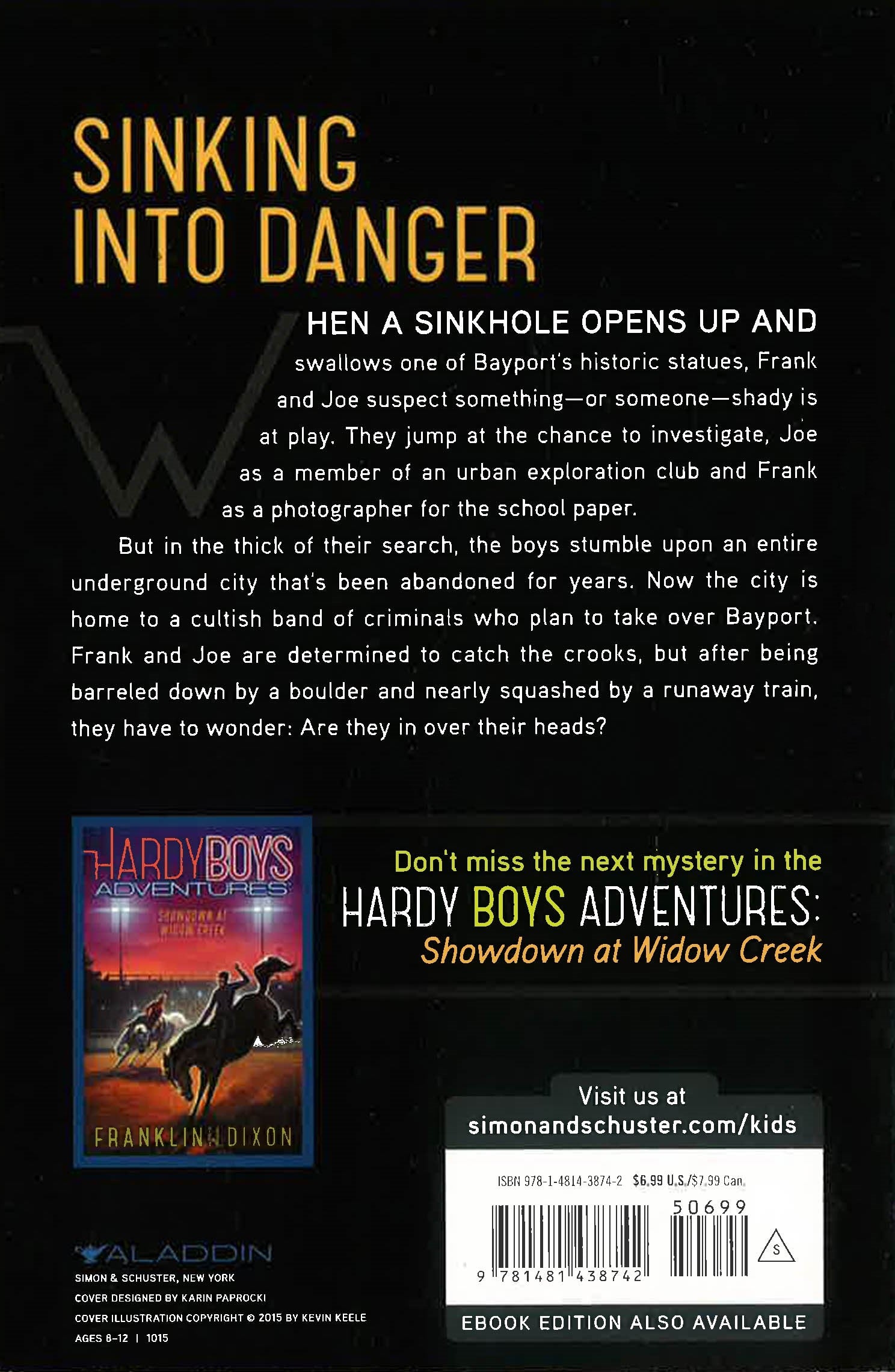 When Frank and Joe set out to explore caves and tunnels, they dig themselves into some dark and dangerous trouble in this Hardy Boys adventure. When a sinkhole opens up and swallows one of Bayport's historic statues, Frank and Joe suspect something--or someone--shady at play. They jump at the chance to investigate; Joe as a member of an urban exploration club, and Frank as photographer for the school paper. But in the thick of their search, the boys stumble upon an entire underground city that's been abandoned for years. Now the city is home to a cultish band of criminals who plan to take over Bayport. Frank and Joe are determined to shut down the crooks, but after being barreled down by a boulder and nearly squashed by a runaway train, they have to wonder: are they in over their heads?