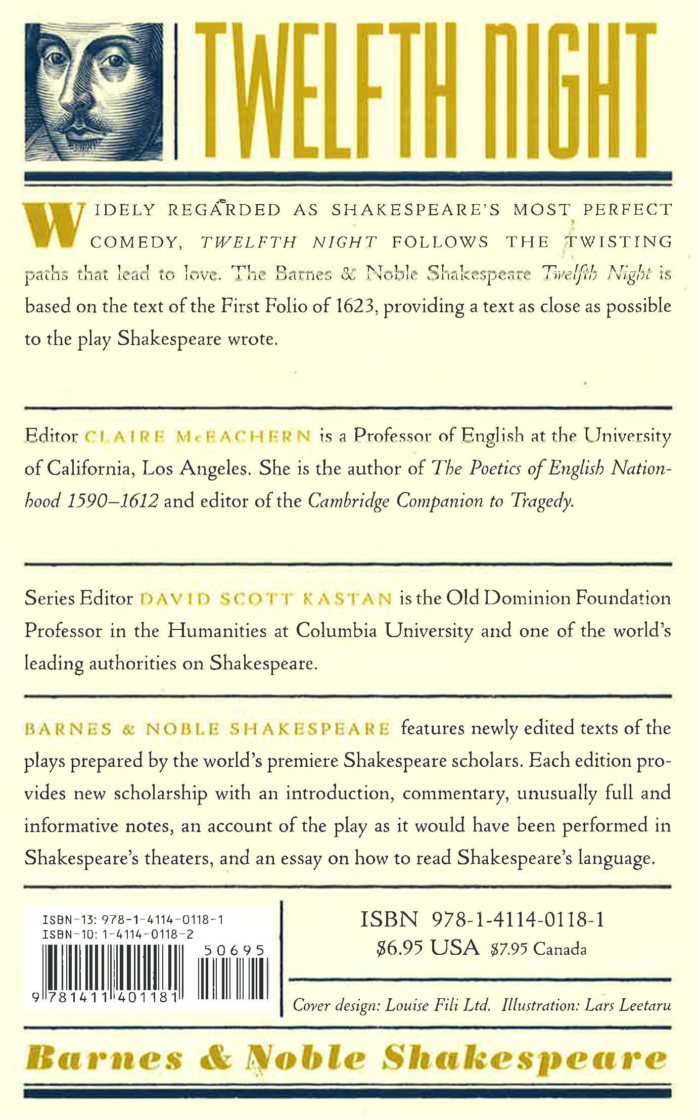 Twelfth Night, by William Shakespeare, is part of the Barnes & Noble Shakespeare series. This unique series features newly edited texts prepared by leading scholars from America and Great Britain, in collaboration with one of the world’s foremost Shakespeare authorities, David Scott Kastan of Columbia University. Together they have produced texts as faithful as possible to those that Shakespeare wrote.