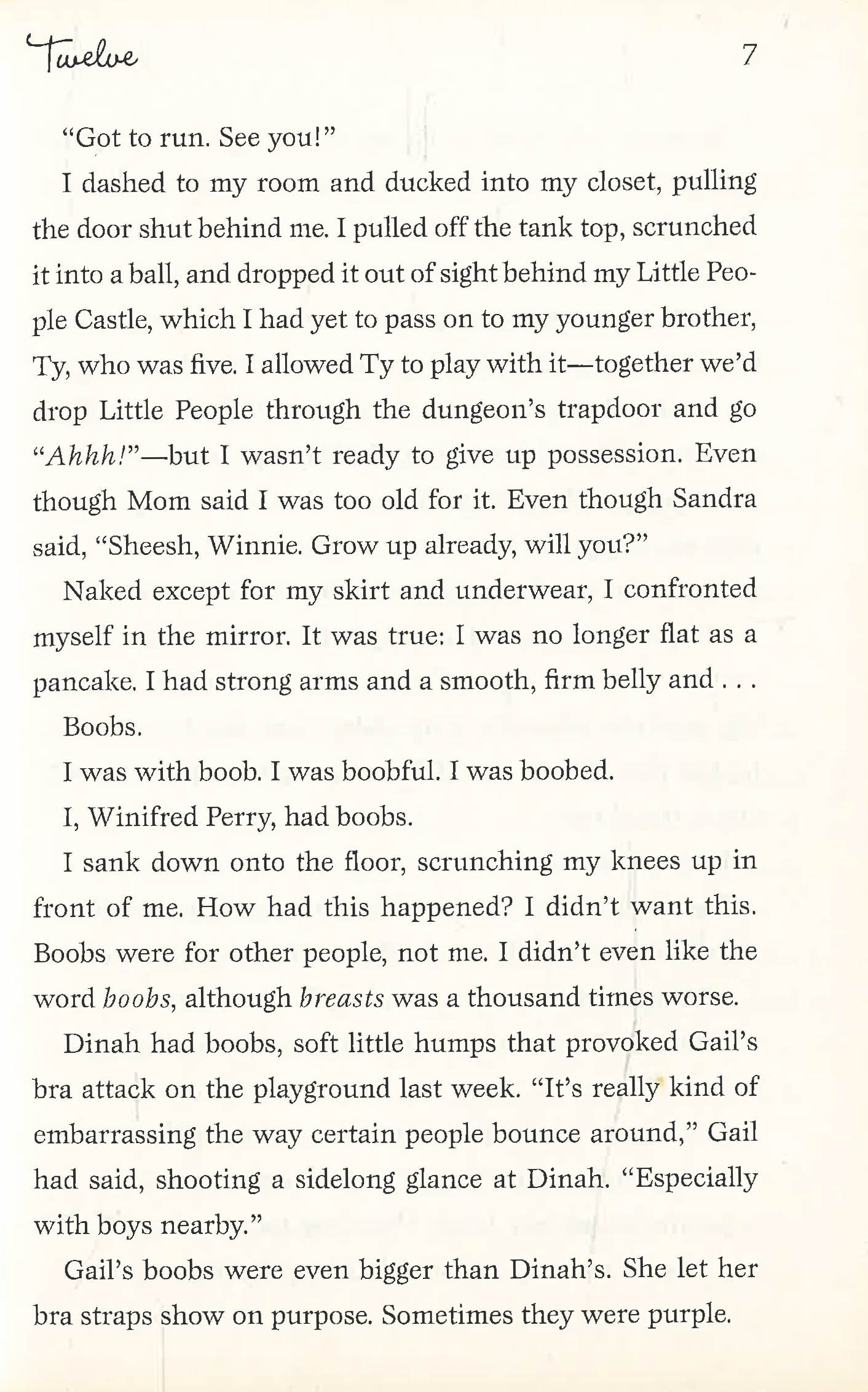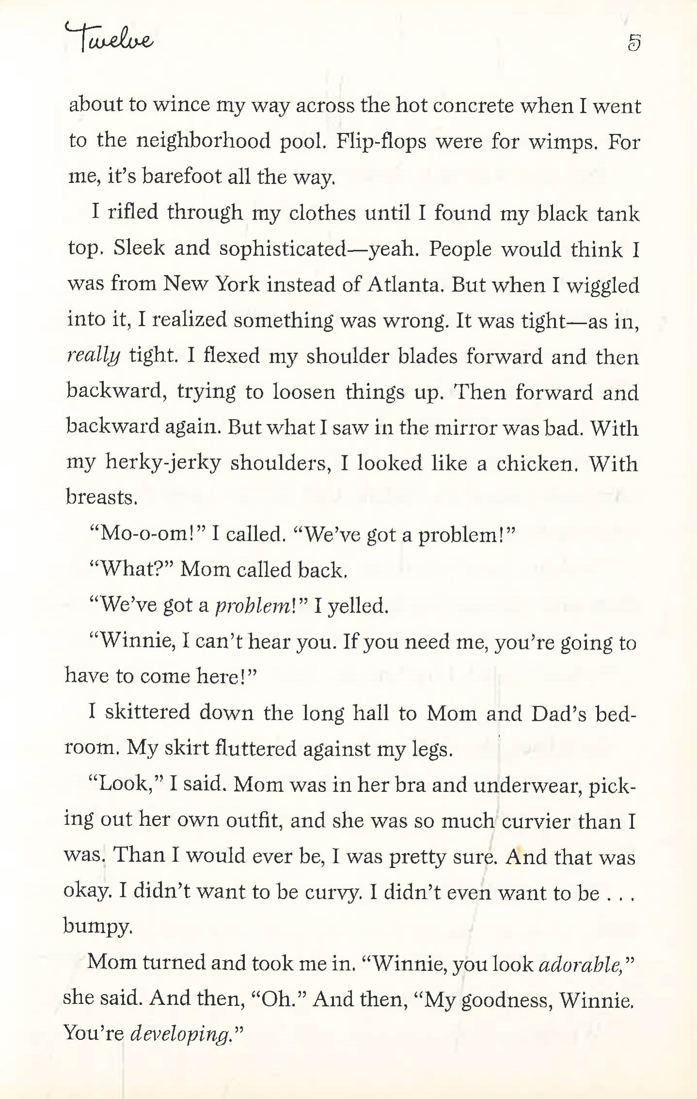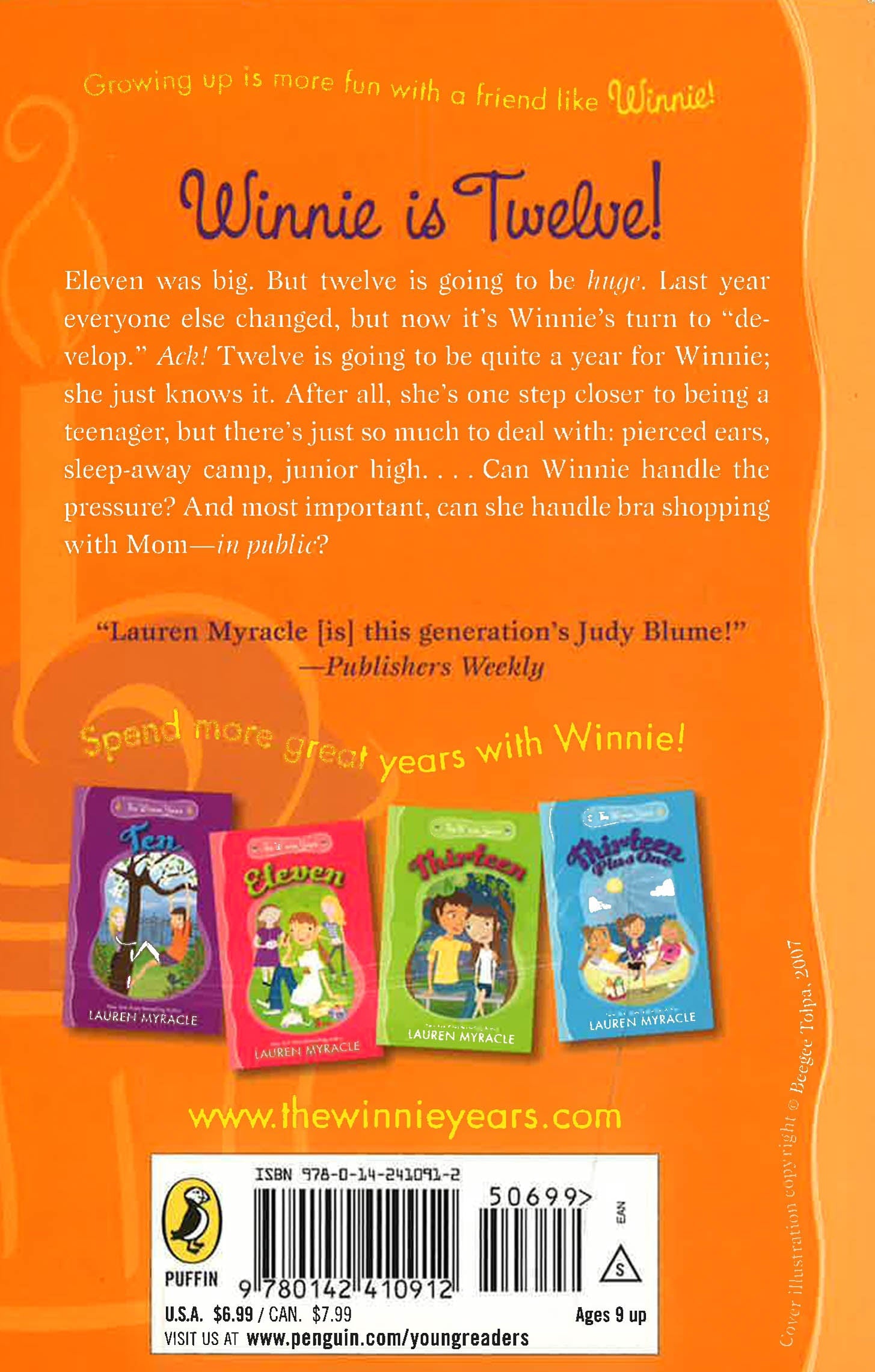 Eleven was big. Winnie got a new best friend, and a new worst friend. But twelve is going to be huge. Last year everyone else changed, but now it's Winnie's turn to "develop." Ack! Twelve is going to be a big year for Winnie, she just knows it. After all, she's one step closer to being a teenager, but there's just so much to deal with: pierced ears, sleepaway camp, junior high. . . .Can Winnie handle the pressure? And most important, can she handle bra shopping with Mom--in public?