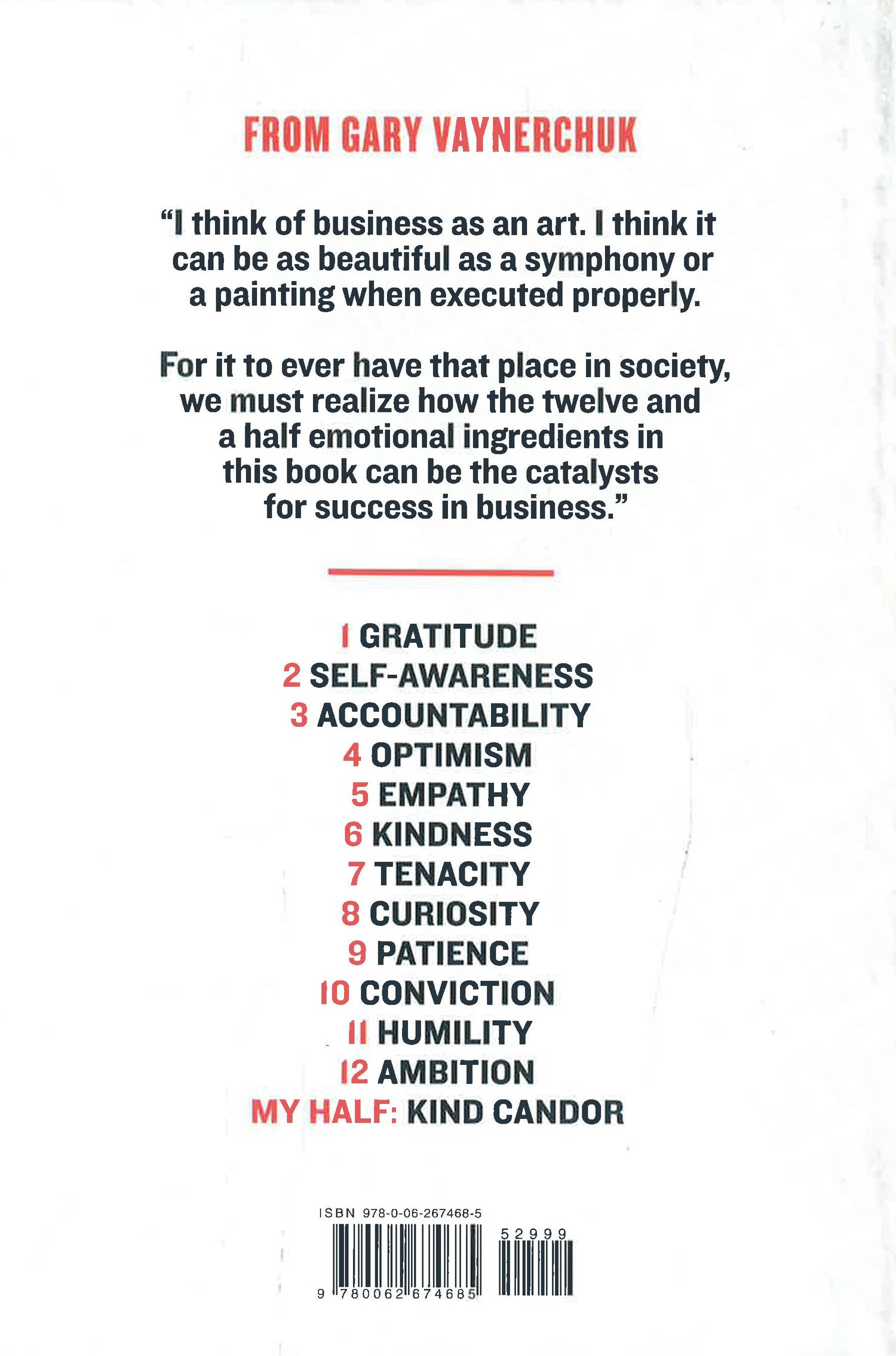 USA Today BestsellerIn his sixth business book, bestselling author, entrepreneur, and investor Gary Vaynerchuk explores the twelve essential emotional skills that are integral to his life-and business-success and provides today's (and tomorrow's) leaders with critical tools to acquire and develop these traits.For decades, leaders have relied on "hard" skills to make smart decisions, while dismissing the importance of emotional intelligence. Soft skills like self-awareness and curiosity aren't quantifiable; they can't be measured on a spreadsheet and aren't taught in B-schools or emphasized in institutions. We've been taught that emotional intelligence is a "nice to have" in business, not a requirement. But soft skills can actually accelerate business success, Gary Vaynerchuk argues. For analytical minds, it's challenging to understand how to get "better" at being self-aware, curious, or empathetic-or even why it's important to try. In this wise and practical book, Gary explores the 12 human ingredients that have led to his success and happiness and provides exercises to help you develop these traits yourself. He also shares what the "half" is-that emotional ingredient of leadership he's weakest at and makes the most effort to improve. Working through the ideas and exercises in the book, he teaches you how to discover your own "halves" and offers insight on how to strengthen them. Gary's secret to success is using these twelve traits in varying mixtures, depending on the situation. But how do we know when to balance patience with ambition? Humility with conviction? Gary provides real-life examples involving common business scenarios to show you how to use them together for optimum results. This iconoclastic book will help you refine your ingredients and improve your leadership capabilities. When implemented in the proper situation, these ingredients can help leaders land promotions, retain core employees, move faster than competitors, win the loyalty of customers, and build successful organizations that last.