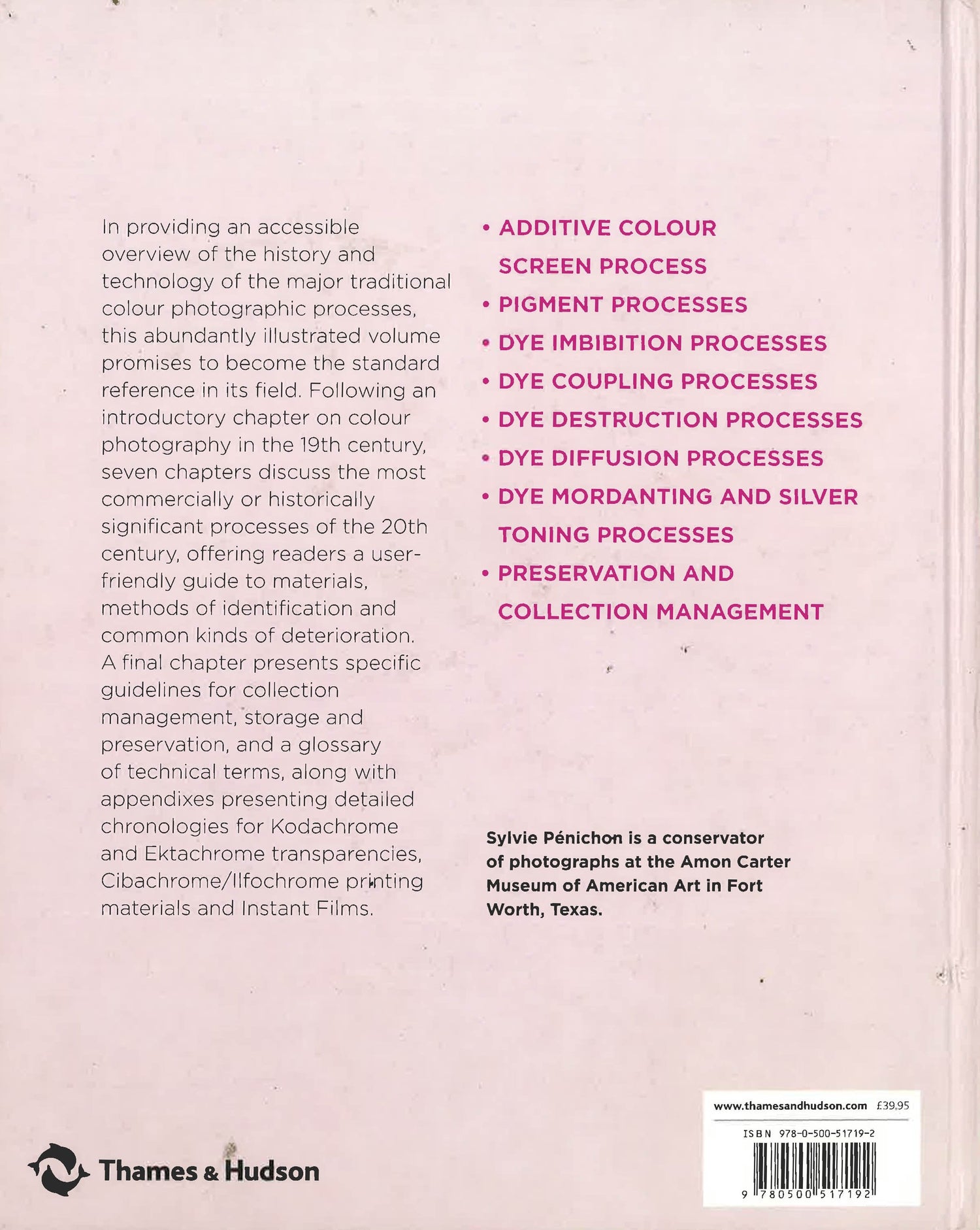 In providing an accessible overview of the history and technology of the major traditional colour photographic processes, this abundantly illustrated volume promises to become the standard reference in its field. Following an introductory chapter on colour photography in the 19th century, seven chapters discuss the most commercially or historically significant processes of the 20th century, offering readers a user-friendly guide to materials, methods of identification and common kinds of deterioration. A final chapter presents specific guidelines for collection management, storage and preservation, and a glossary of technical terms, along with appendixes presenting detailed chronologies for Kodachrome and Ektachrome transparencies, Cibachrome/Ilfochrome printing materials and Instant Films.