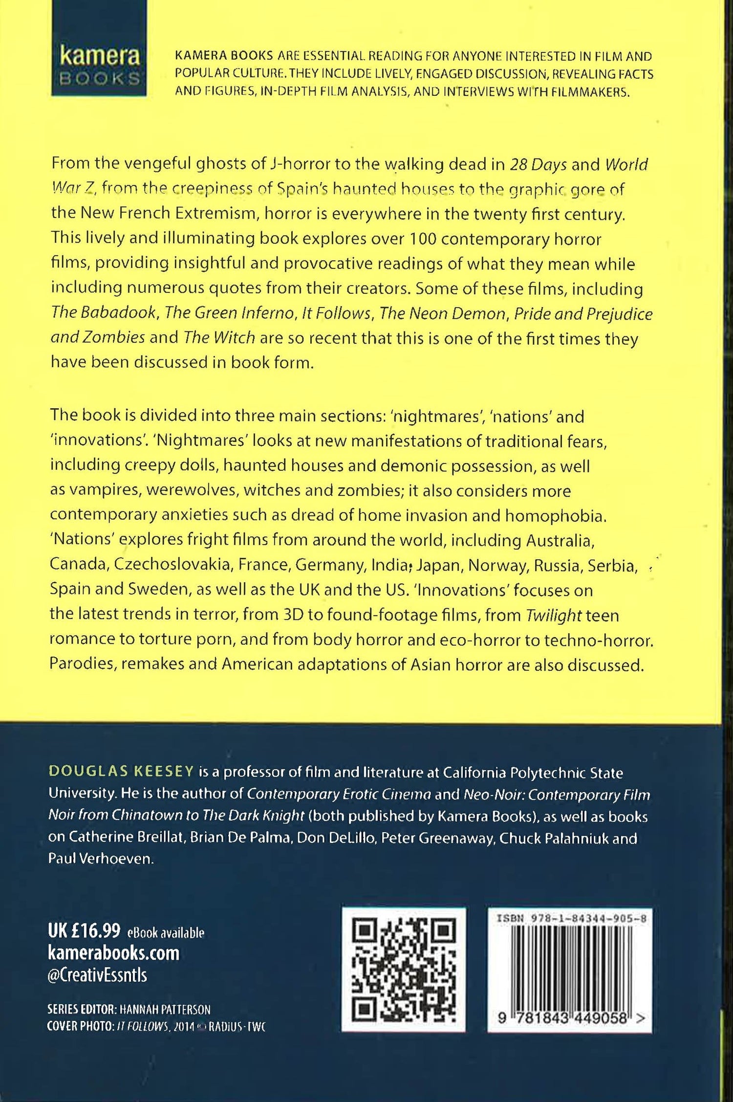 This lively and illuminating book explores over 100 contemporary horror films, providing insightful and provocative readings of what they mean while including numerous quotes from their creators. Some of these films, including The Babadook, The Green Inferno, It Follows, The Neon Demon, Pride and Prejudice and Zombies, and The Witch, are so recent that this will be one of the first times they are discussed in book form. The book is divided into three main sections: "nightmares," "nations," and "innovations." "Nightmares" looks at new manifestations of traditional fears, including creepy dolls, haunted houses and demonic possession as well as vampires, werewolves, witches and zombies; and also considers more contemporary anxieties such as dread of home invasion and homophobia. "Nations" explores fright films from around the world, including Australia, Canada, Czechoslovakia, France, Germany, India, Japan, Norway, Russia, Serbia, Spain and Sweden as well as the UK and the U.S. "Innovations" focuses on the latest trends in terror from 3D to found-footage films, from Twilight teen romance to torture porn, and from body horror and eco-horror to techno-horror. Parodies, remakes and American adaptations of Asian horror are also discussed.