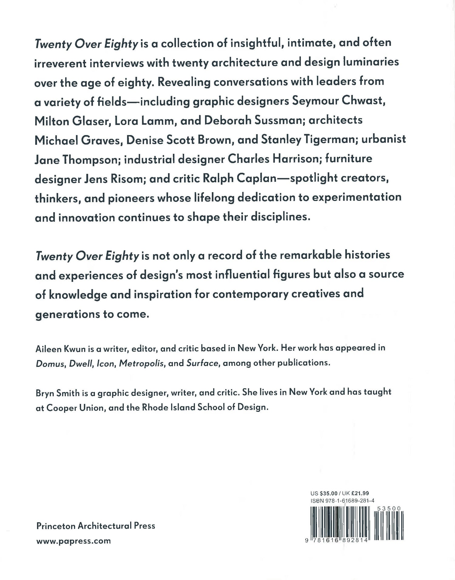 Twenty Over Eighty is a collection of insightful, intimate, and often irreverent interviews with twenty architecture and design luminaries over the age of eighty. Revealing conversations with leaders from a variety of fields—including graphic designers Seymour Chwast, Milton Glaser, Lora Lamm, and Deborah Sussman; architects Michael Graves, Denise Scott Brown, and Stanley Tigerman; urbanist Jane Thompson; industrial designer Charles Harrison; furniture designer Jens Risom; and critic Ralph Caplan—spotlight creators, thinkers, and pioneers whose lifelong dedication to experimentation and innovation continues to shape their disciplines well into their ninth decade.
