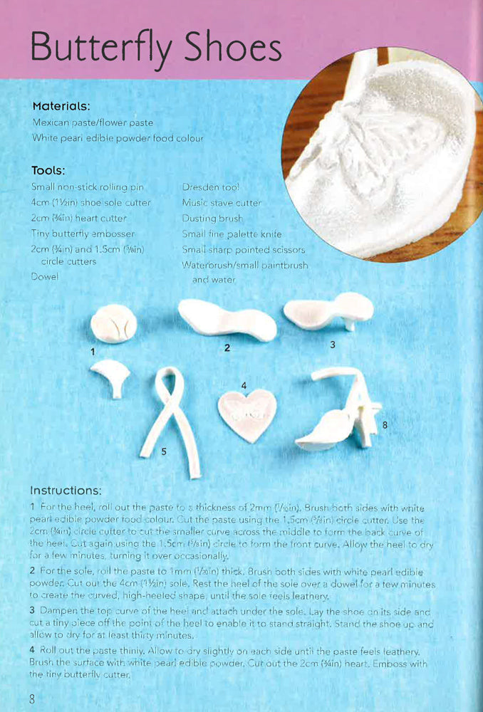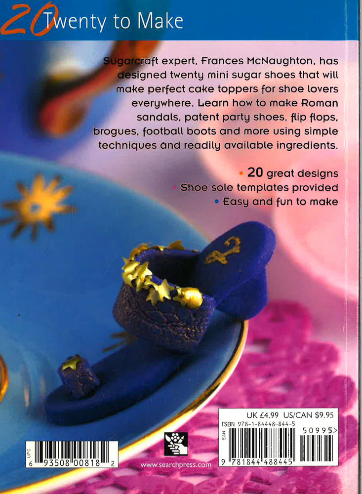 Want a special decoration for a party or wedding cake - girly cupcakes or designer cookies? Shoes are hot fashion and a sugar sensation. Want a special decoration for a party or wedding cake...girly cupcakes or designer cookies? Shoes are hot fashion and a sugar sensation. From gorgeous flirty bling beauties to fun, fluffy slippers and comfortable fashion boots, best-selling sugarcraft author, Frances McNaughton shows how to create tasty footwear - some with matching bags and an assortment of sweet embellishments. Shoe and bag cutters/moulds are available on the internet from sugarcraft outlets and Amazon sell them too. The following are some of the projects, and bags will follow the shoe theme: simple flip flops, sandals, stilettos, Cinderella shoes, ballet shoes, sweet sporties, sweet strappies, boots, baby shoes, fantasy shoes, patterned and printed shoes. The constituent parts of the shoes and bags are shown with the step by step instructions, and annotated for clarity, then the finished items are pictured in all their splendour. People will love to make these cake toppers for friends or relatives who can't get enough shoes.