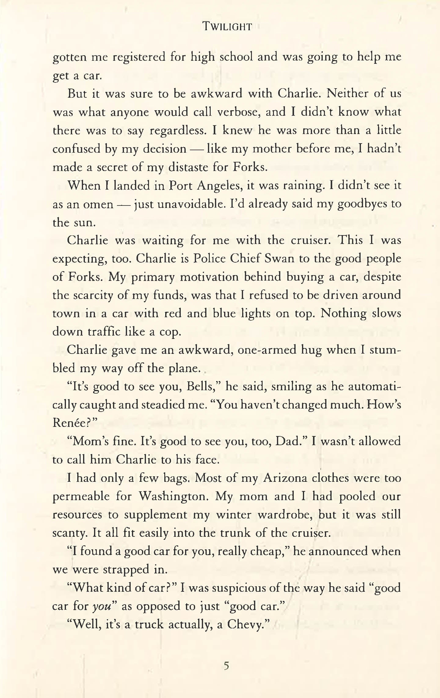 Isabella Swan's move to Forks, a small, perpetually rainy town in Washington, could have been the most boring move she ever made. But once she meets the mysterious and alluring Edward Cullen, Isabella's life takes a thrilling and terrifying turn. Up until now, Edward has managed to keep his vampire identity a secret in the small community he lives in, but now nobody is safe, especially Isabella, the person Edward holds most dear. The lovers find themselves balanced precariously on the point of a knife, between desire and danger.