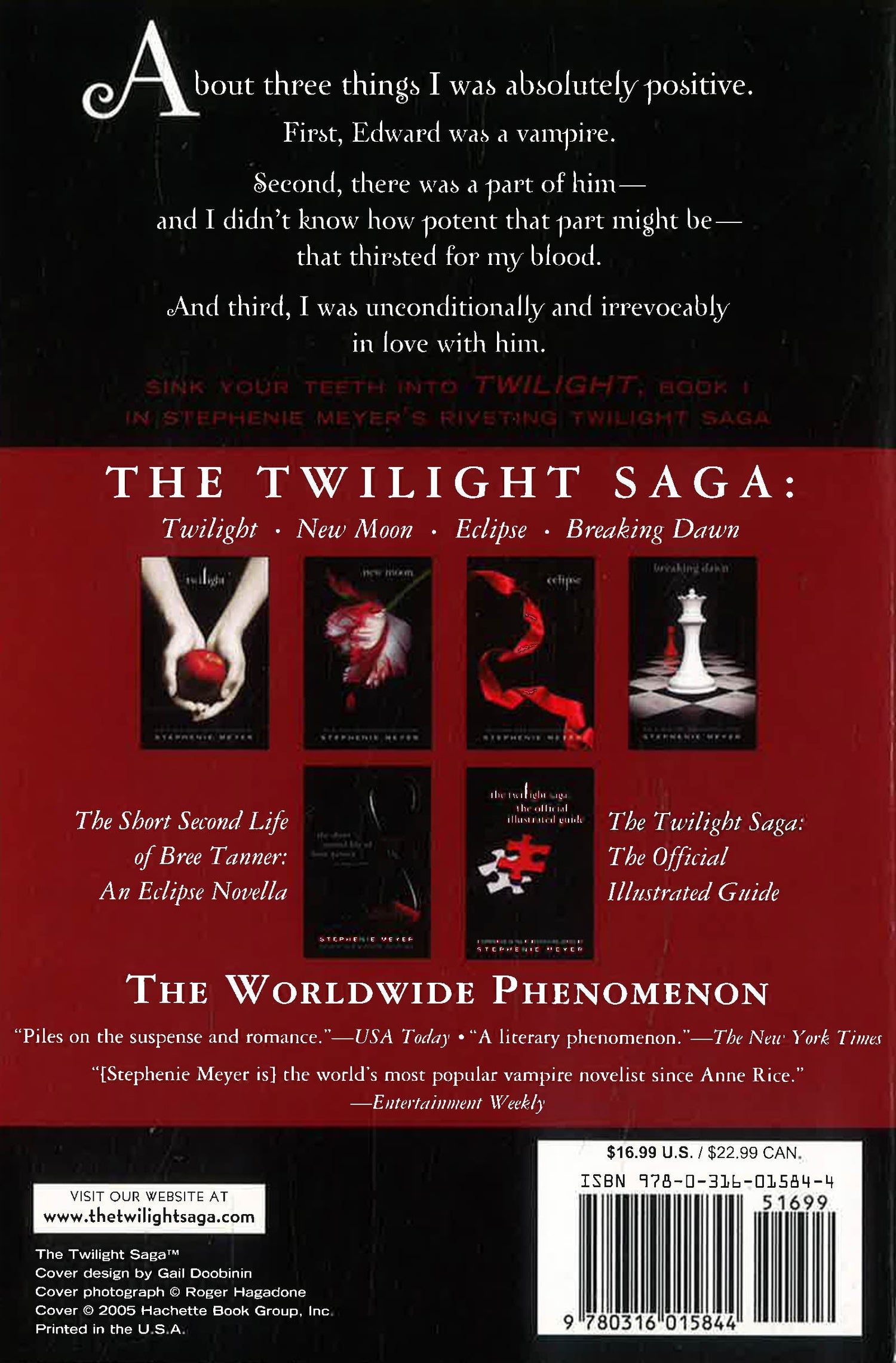 Isabella Swan's move to Forks, a small, perpetually rainy town in Washington, could have been the most boring move she ever made. But once she meets the mysterious and alluring Edward Cullen, Isabella's life takes a thrilling and terrifying turn. Up until now, Edward has managed to keep his vampire identity a secret in the small community he lives in, but now nobody is safe, especially Isabella, the person Edward holds most dear. The lovers find themselves balanced precariously on the point of a knife-between desire and danger.Deeply romantic and extraordinarily suspenseful, Twilight captures the struggle between defying our instincts and satisfying our desires. This is a love story with bite.