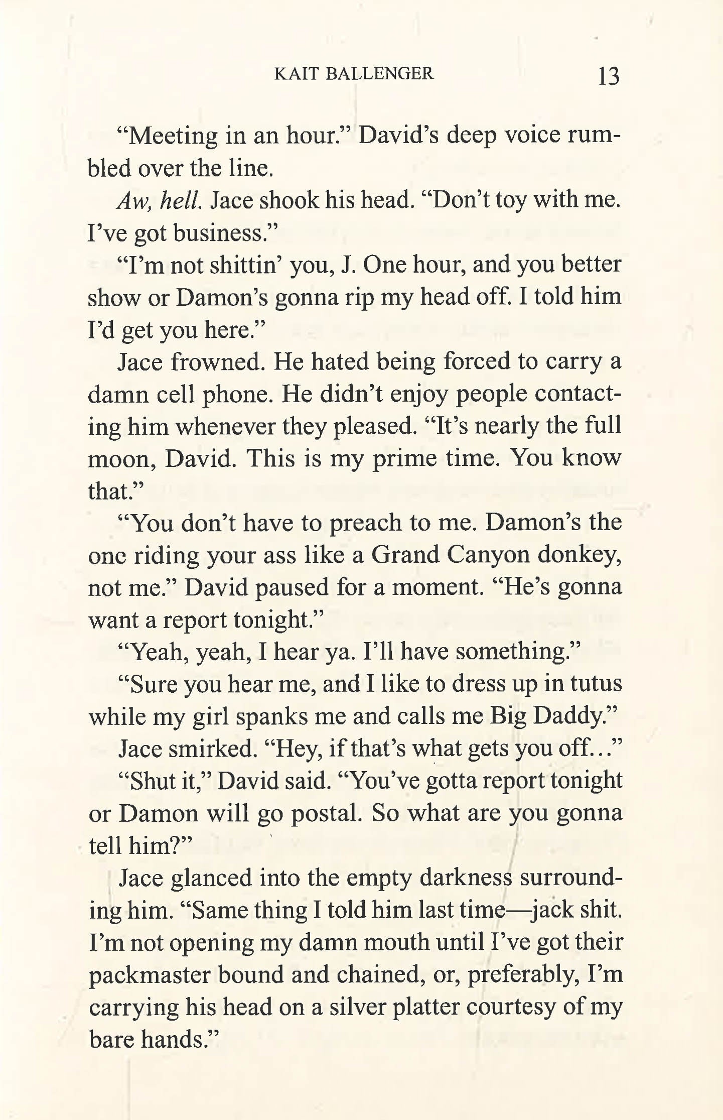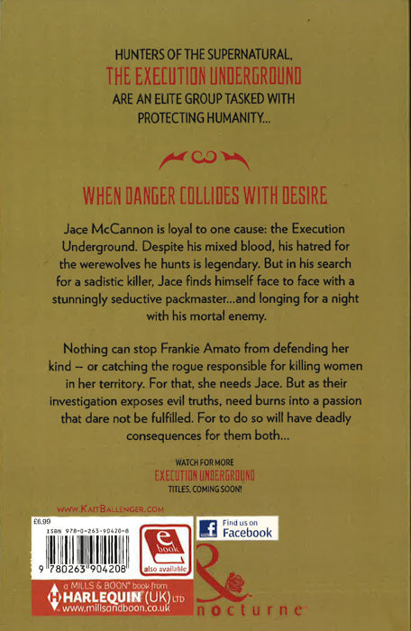 Jace McCannon is loyal to one cause: the Execution Underground. Despite his mixed blood, his hatred for the werewolves he hunts is legendary. But in his search for a sadistic killer, Jace finds himself face to face with a stunningly seductive packmaster...and longing for a night with his mortal enemy.