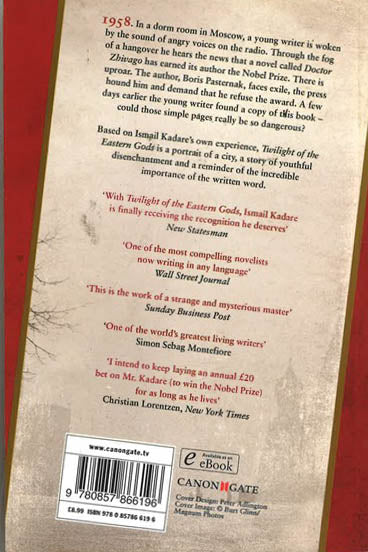 1958. In a dorm room in Moscow, a young writer is woken by the sound of angry voices on the radio. Through the fog of a hangover he hears the news that a novel called Doctor Zhivago has earned its author the Nobel Prize. There is uproar. The author, Boris Pasternak, faces exile, the press hound him and demand that he refuse the award. A few days earlier the young writer found a copy of this book - could those simple pages really be so dangerous? Based on Ismail Kadare's own experience, Twilight of the Eastern Gods is a portrait of a city, a story of youthful disenchantment and a reminder of the incredible importance of the written word.