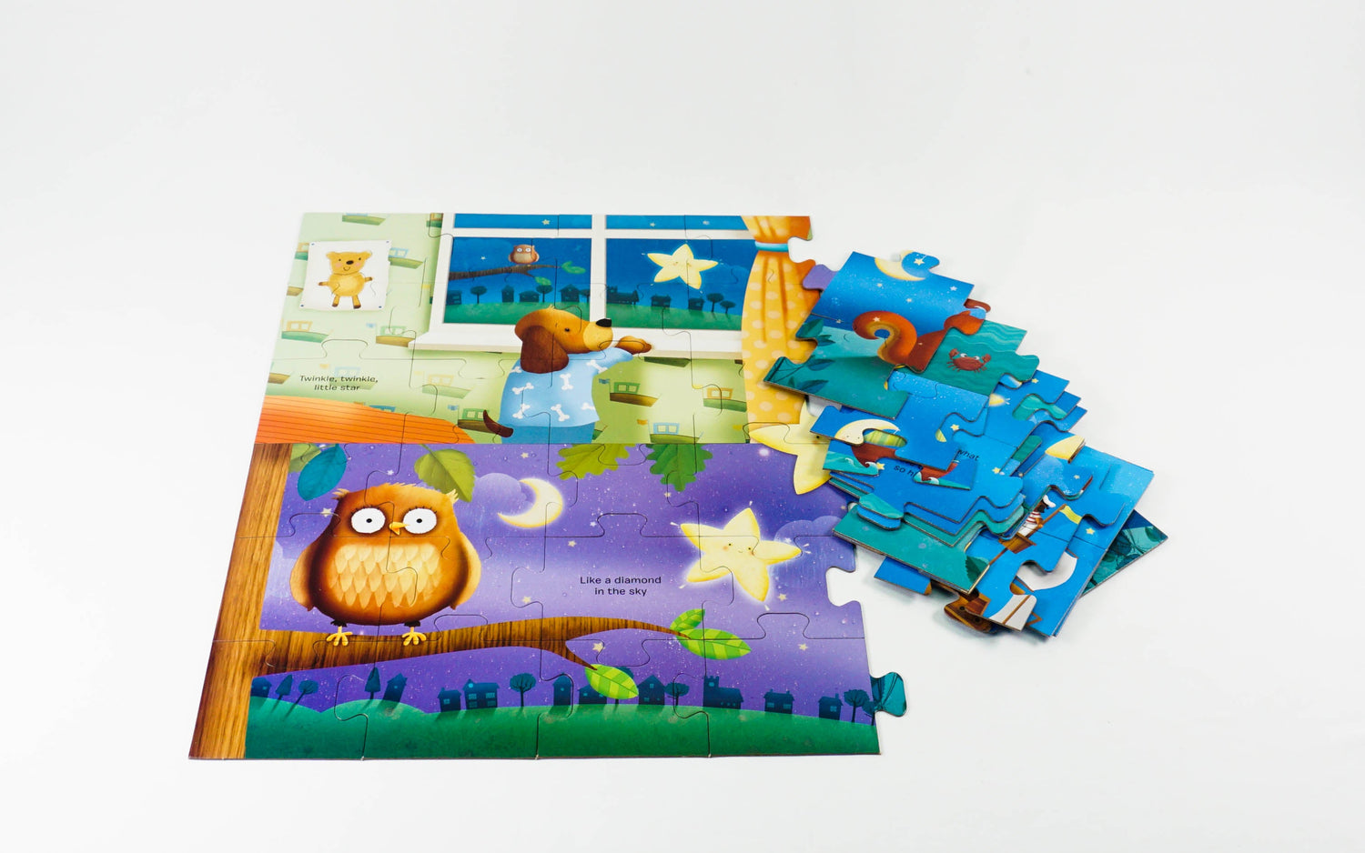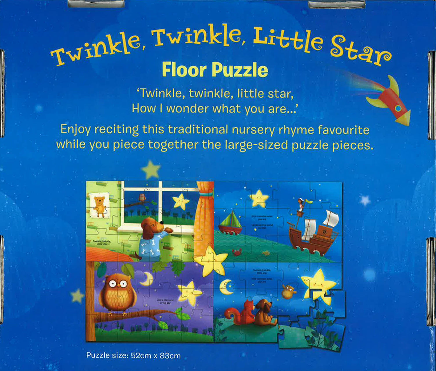 This favourite nursery rhyme comes to life with a large piece floor puzzle perfect for little hands. The 48-piece floor puzzle features four scenes and is housed in a handy box with handle perfect for travelling or sleepovers.Sturdy large puzzle pieces.Colourful and fun artwork from Anna Jones.Puzzle is contained in a sturdy box with handle, perfect for travel.