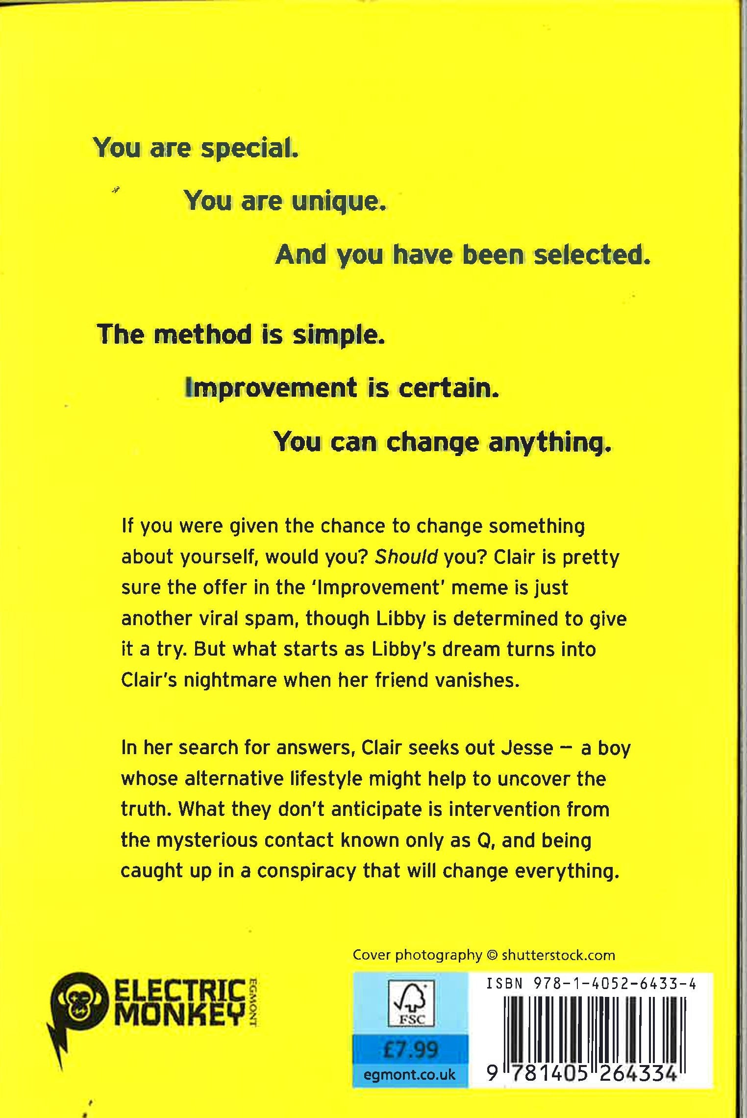 You are special. You are unique. And you have been selected. The method is simple. Improvement is certain. You can change anything. A near-future thriller from New York Times bestselling author Sean Williams, that fans of the GONE series and Doctor Who will love. If you were given the chance to change something about yourself, would you? Should you? Clair is pretty sure the offer in the 'Improvement' meme is just another viral spam, though Libby is determined to give it a try. But what starts as Libby's dream turns into Clair's nightmare when her friend vanishes. In her search for answers, Clair seeks out Jesse - a boy whose alternative lifestyle might help to uncover the truth. What they don't anticipate is intervention from the mysterious contact known only as Q, and being caught up in a conspiracy that will change everything. This is an edge of your seat story about technology, identity and friendship.