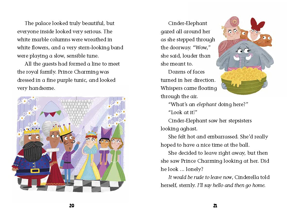 Young Cinderella is desperate to go to the handsome prince's ball... and she's delighted when Fenella the fairy offers to help her. Unfortunately though, Fenella hasn't really got the hang of her magic wand yet. Can Cinderella dance with the prince without tripping over her glass... flippers? And can she leave before midnight, when she'll turn into a ten-ton Cinder-Elephant?