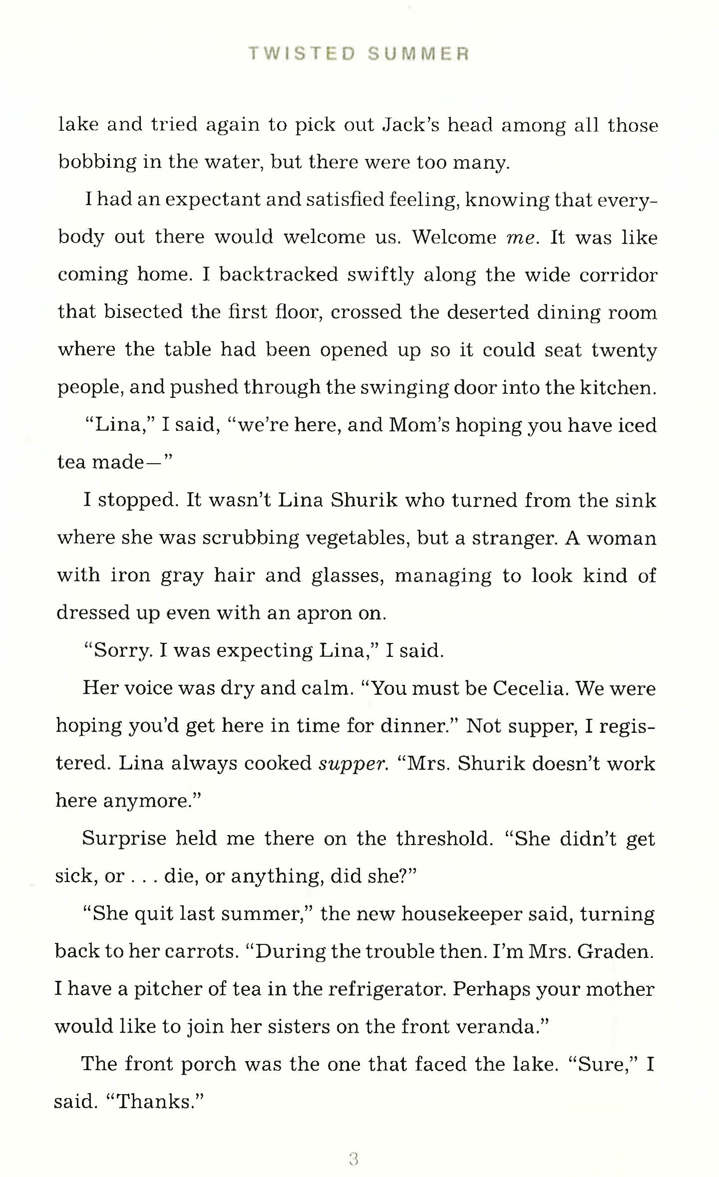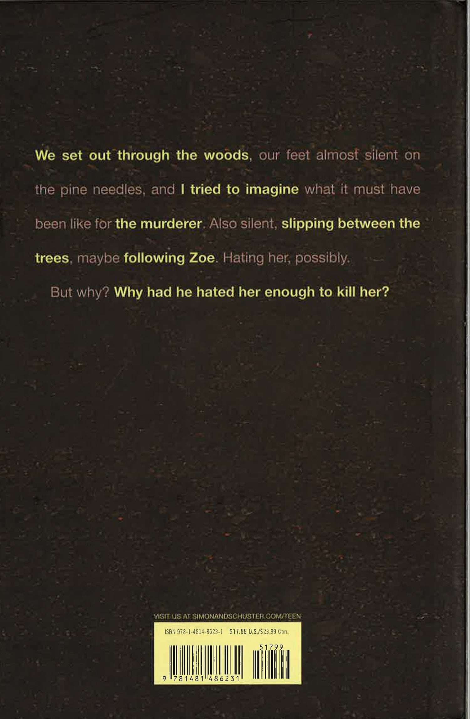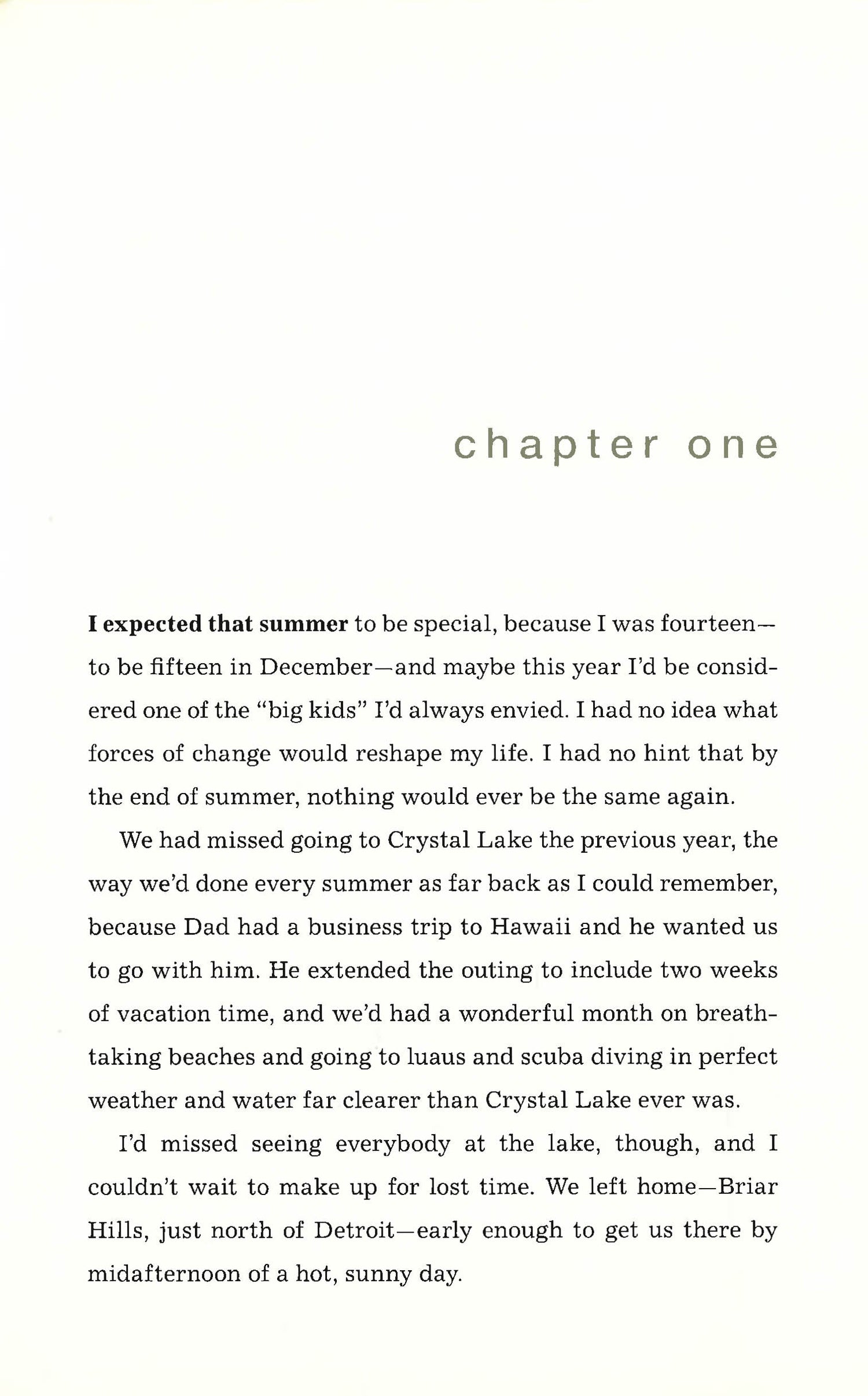 One summer changes everything.Two kids, two lives - ruined before they even began. One, a girl, dead - strangled in an empty cabin. The other, a boy, spending the rest of his life in jail for her murder.To Cici, it all seems so unreal. These were kids she had grown up with, whom she had known. She can't believe Brody Shurik could have murdered Zoe Cyrek. Something's going on here, and Cici's going to find out exactly what it is.But Cici has an even harder time believing what she uncovers. Could the murderer really be someone close to her? Maybe even a member of her family? And could she be the murderer's next target?