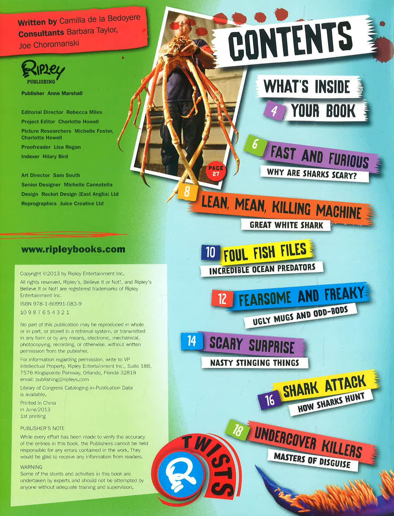 Meet extraordinary sharks and savage sea creatures in this exciting new Ripley's book. With fun facts, awesome images, and amazing Ripley stories throughout, kids will love reading about the fearsome, freaky and utterly odd ocean-dwellers on every page.