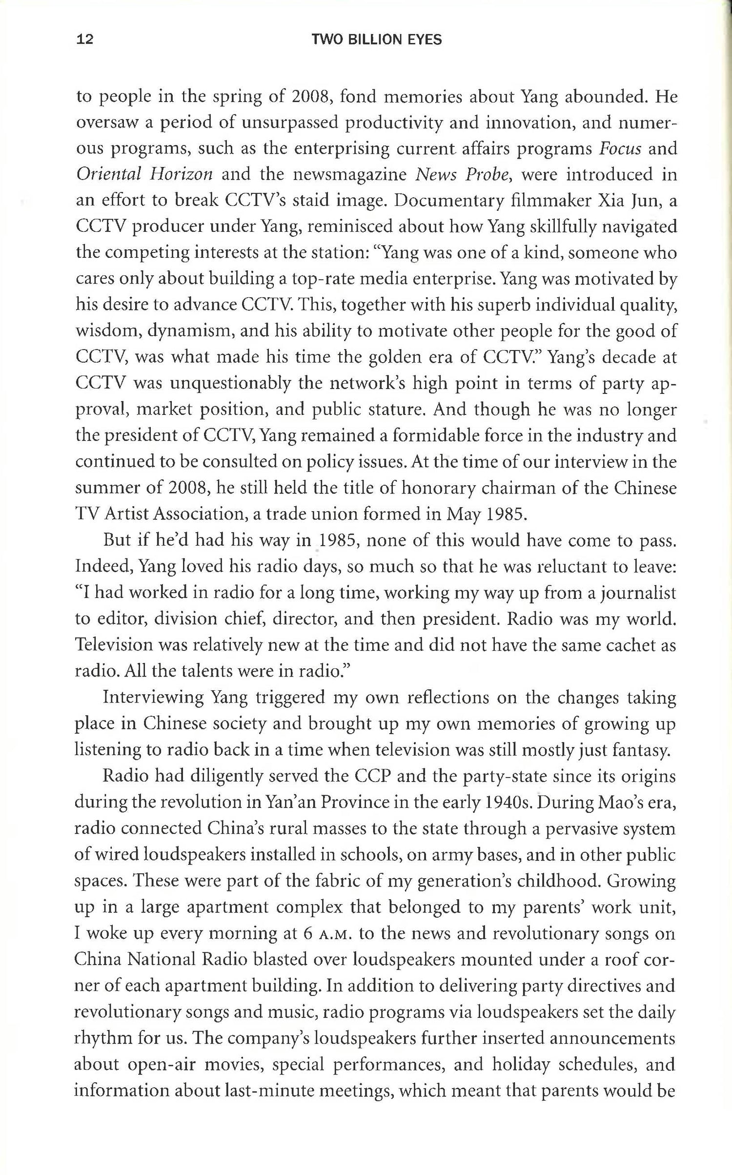 "Up until Two Billion Eyes," wrote the Los Angeles Review of Books, "the view of Chinese media has often been limited...[Ying] Zhu expands the periphery of our vision." Acclaimed in hardcover by experts on China, Zhu's brilliant dissection of China Central television (CCTV) is the first book to look at the dynamic modern media conglomerate and official mouthpiece of the Chinese Communist Party, with an audience of over 1.2 billion viewers globally, including millions in the United States. With "cogent analysis and penetrating insight" (Publishers Weekly), Two Billion Eyes tells the groundbreaking story of this hugely influential media player. "A fascinating window into the emergence of a Chinese public sphere" (Fredric Jameson) and "an indispensable guide to the Chinese media landscape (The New Inquiry), Two Billion Eyes explores how commercial priorities and journalistic ethics have competed with the demands of state censorship and how Chinese audiences themselves have grown more critical. A "unique window" (South China Morning Post) into one of the world's most important corporations, this is a crucial new book for anyone seeking to understand contemporary China.