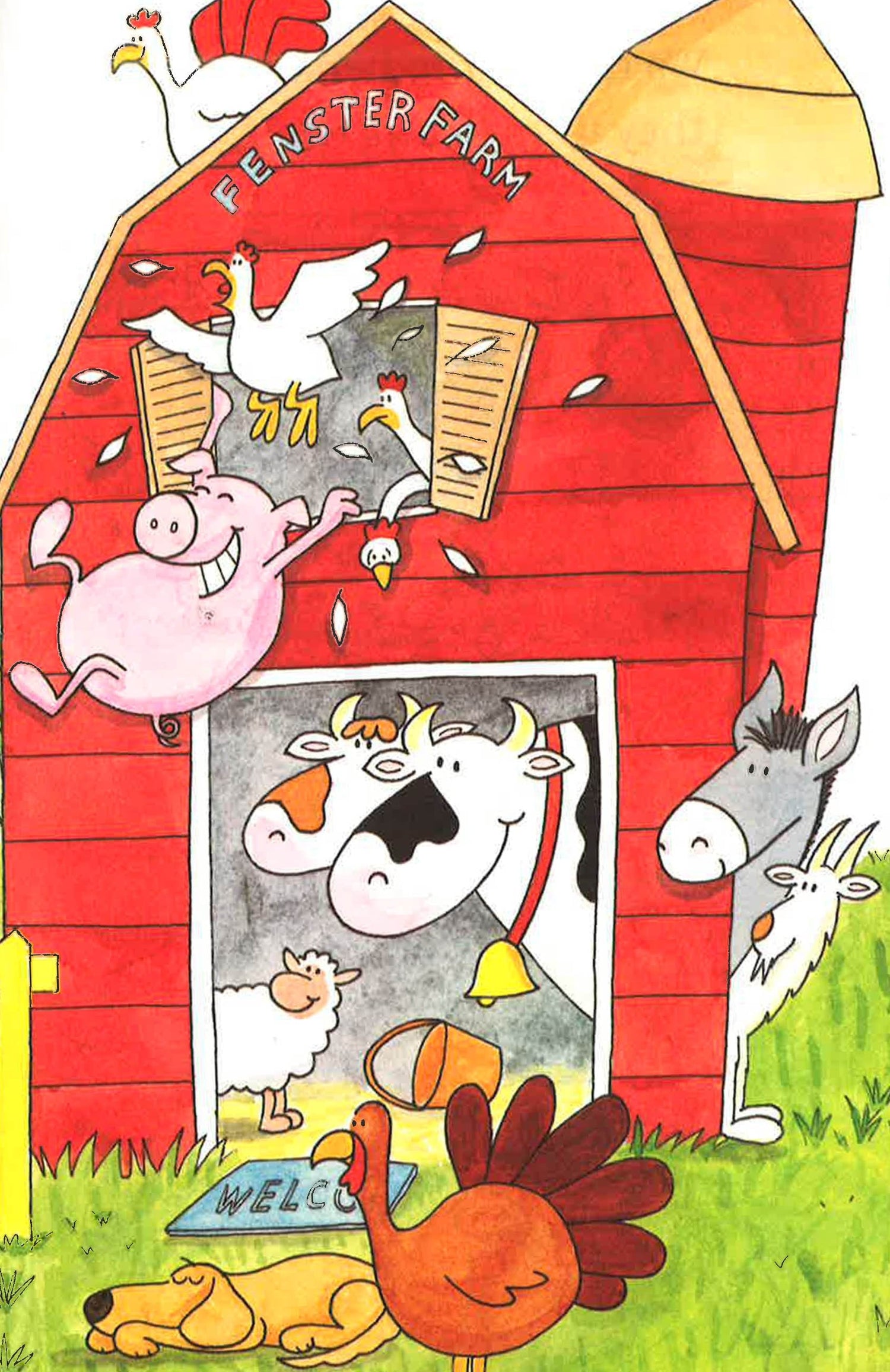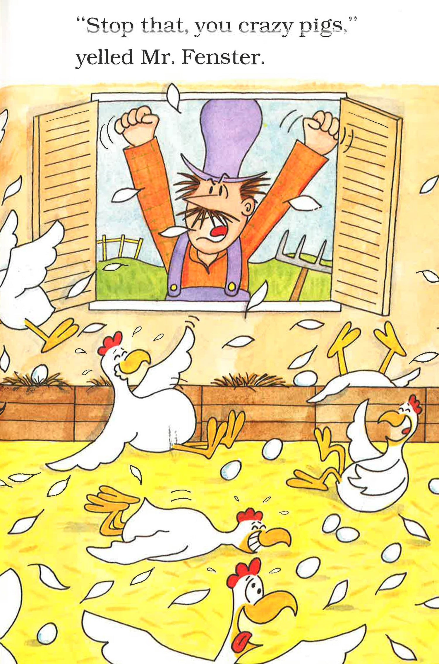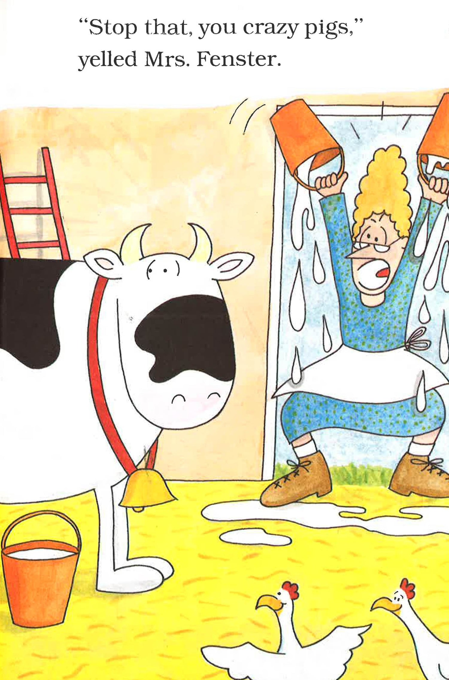 Two pigs who drive the farmer and his wife crazy with their silliness and pranks decide to move to a new farm, only to be missed by all when they leave.