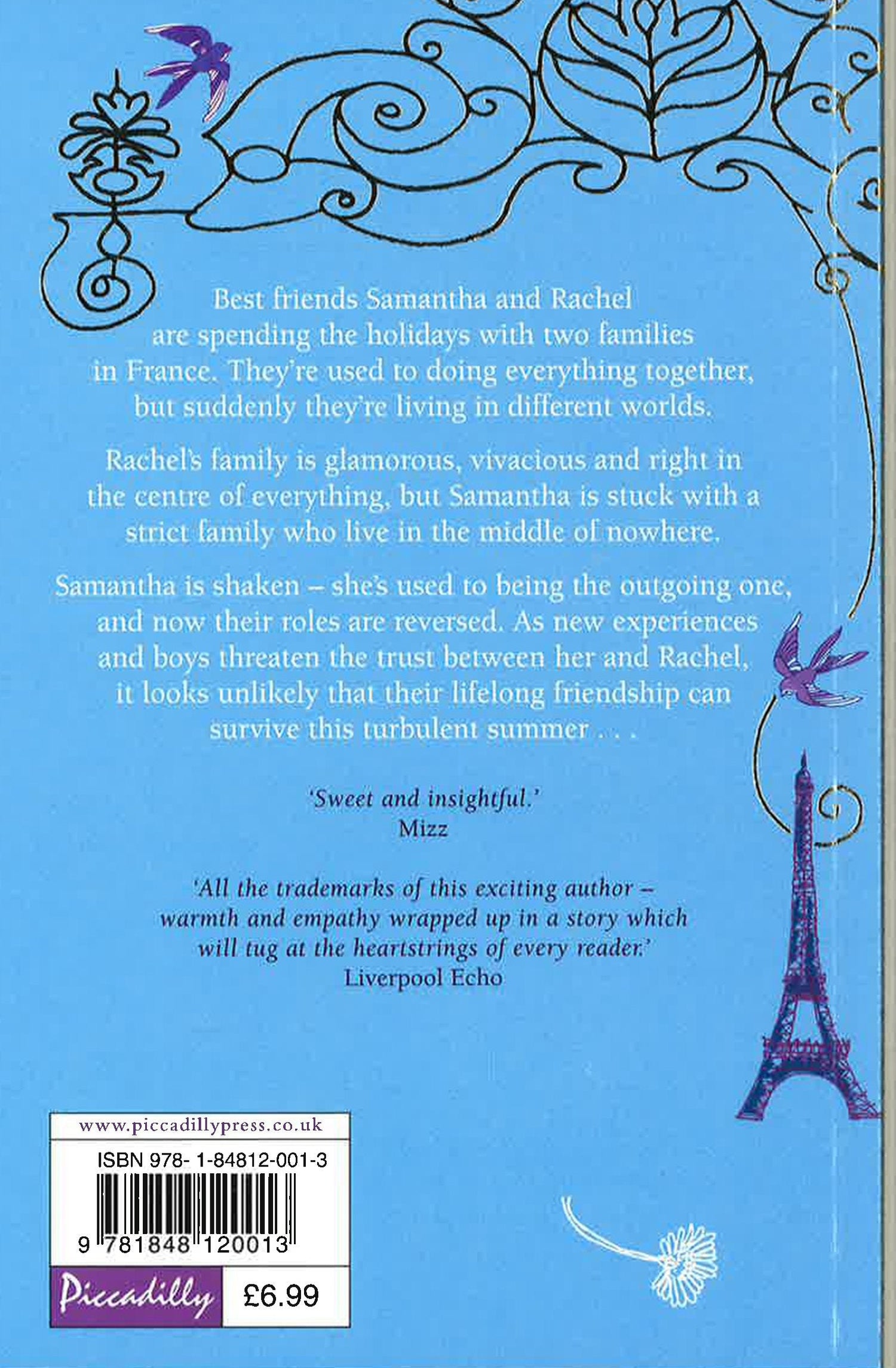 We were best friends when we set out for France. Now I'm not so sure.' Best friends Samantha and Rachel are spending the holidays with two families in France. They're used to doing everything together, but suddenly they're living in different worlds. Rachel's family is glamorous, vivacious and right in the centre of everything, but Samantha is stuck with a strict family who live in the middle of nowhere. Samantha is shaken - she's used to being the outgoing one, and now their roles are reversed. As new experiences and boys threaten the trust between her and Rachel, it looks unlikely that their lifelong friendship can survive this turbulent summer.