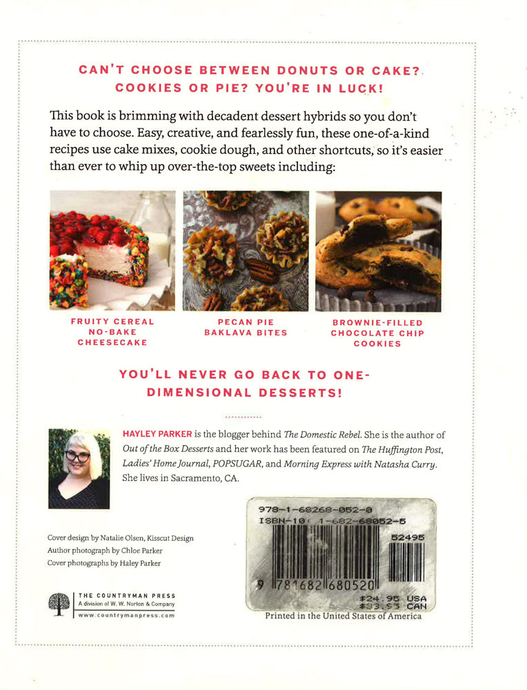 Sweet treats that combine two or more classic desserts from the blogger who makes "even novice bakers feel like pros" (POPSUGAR)Everyone loves cake with ice cream. The combination of textures and flavors, even temperature, adds up to much more than the sum of its parts. In her new book, blogger Hayley Parker takes this concept to new levels. Using cake and brownie mixes, ready-made doughs and crusts, and other make-it-simple shortcuts, Parker comes up with the most deviously delicious desserts imaginable, including: Strawberry Shortcake BarsCreme Brulee PieBanana Split CupcakesRed Velvet Cake Shakes Call them mash-ups or mix-ins, hybrid desserts or sugar hacks, these desserts go above and beyond. Out of the Box, indeed!
