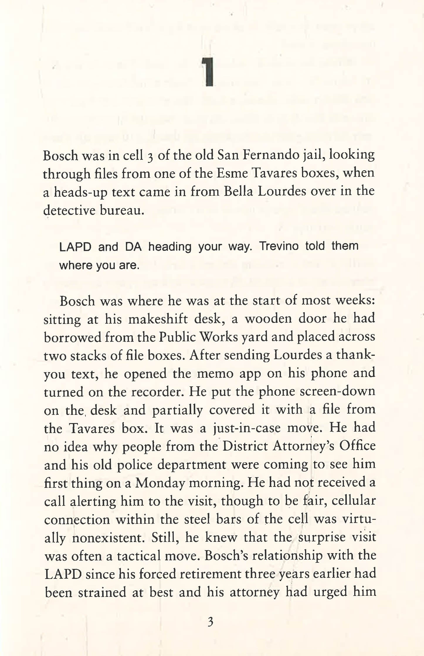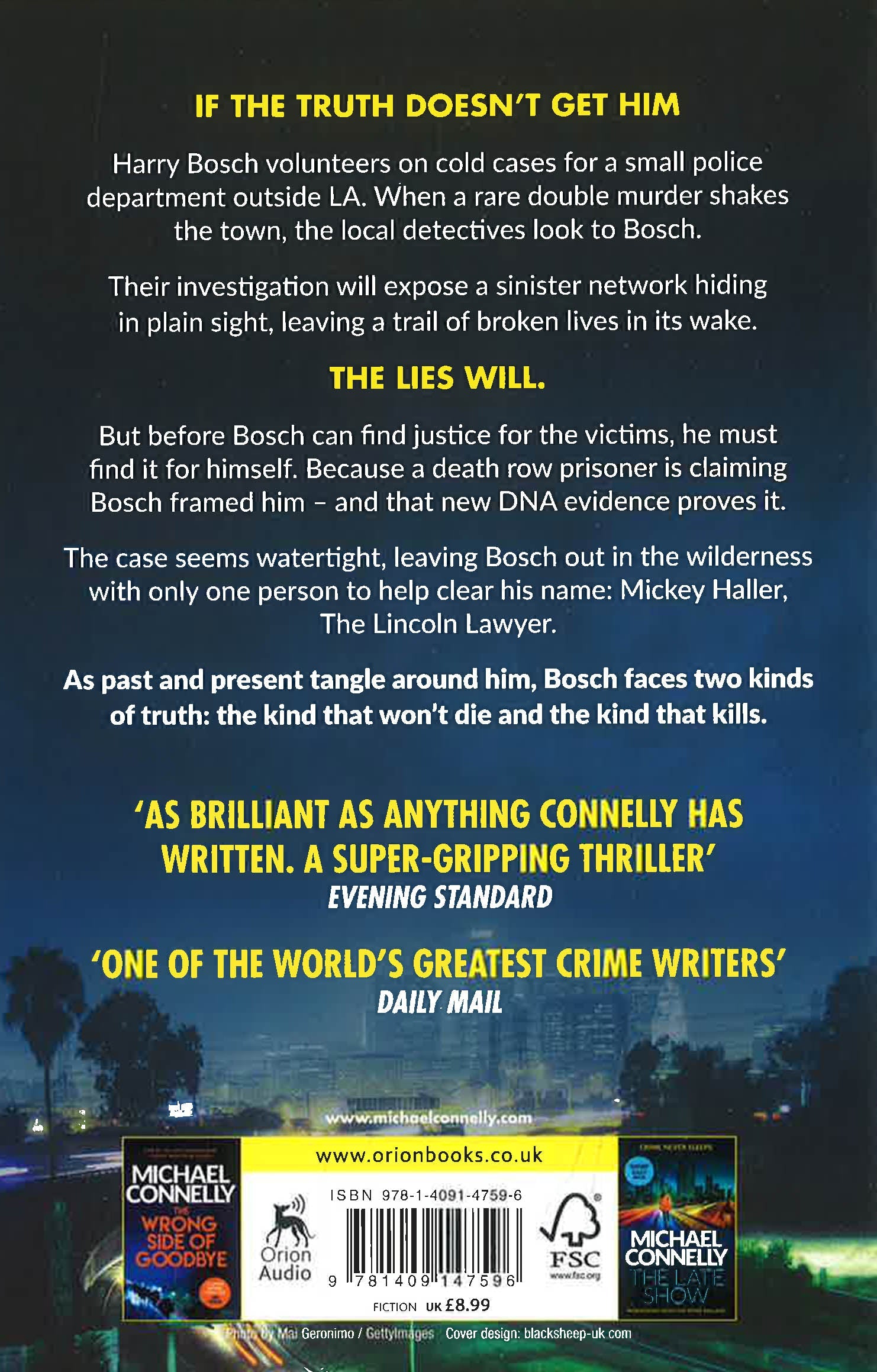 But with experience, come the ghosts of long-forgotten crimes. A death row inmate claims Bosch framed him, and that new DNA evidence proves it. The LAPD investigators say the case is watertight, leaving Bosch out in the wilderness to clear his name and keep a sadistic killer behind bars.