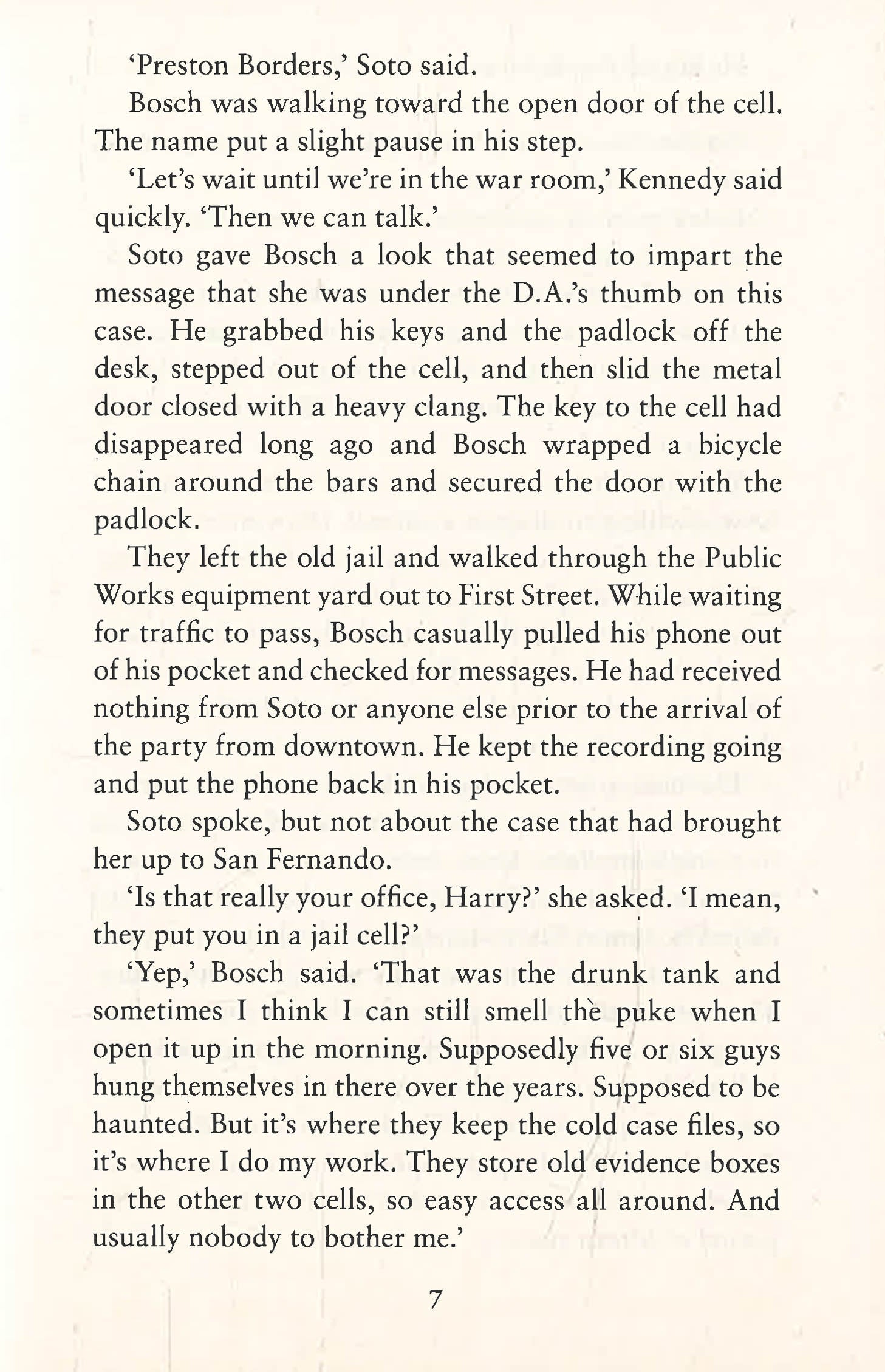 Harry Bosch works cold cases, helping out the under-funded San Fernando police department. When a double murder at a local pharmacy is called in, Bosch is the most seasoned detective on the scene.