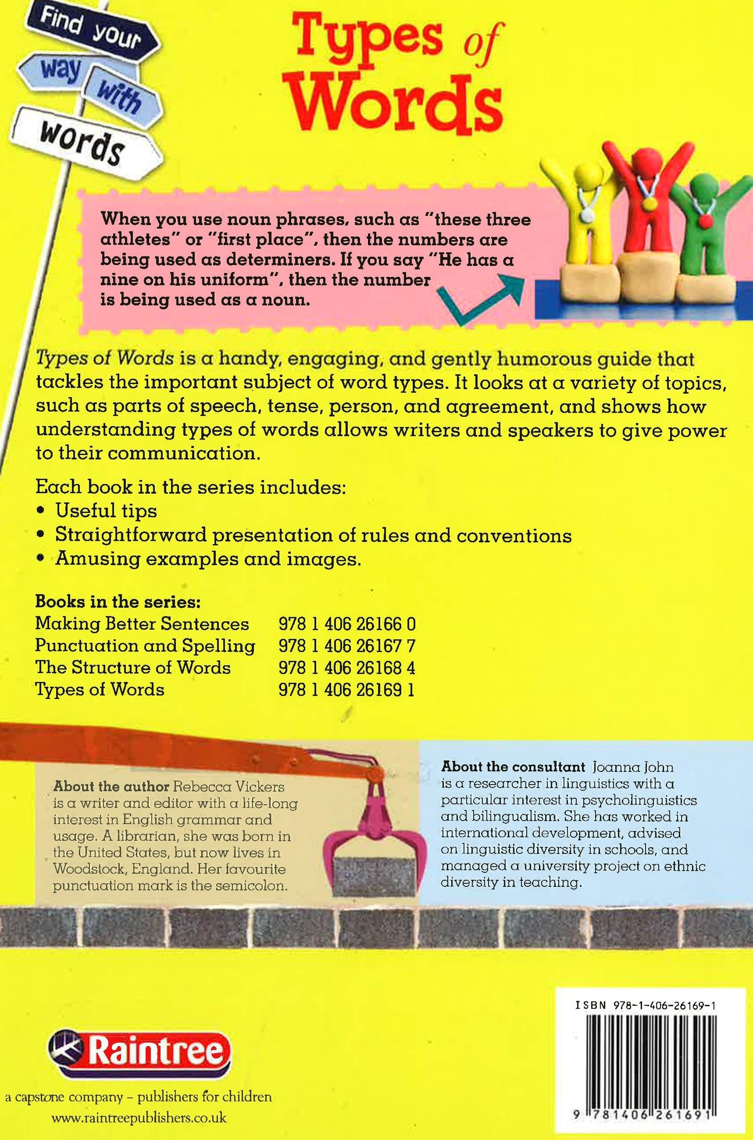 This handy, engaging, and gently humorous guide tackles the important subject of word types. It looks at a variety of topics, such as parts of speech, tense, person, and agreement, and shows how understanding types of words allows the writers and speakers to give power to their communication.