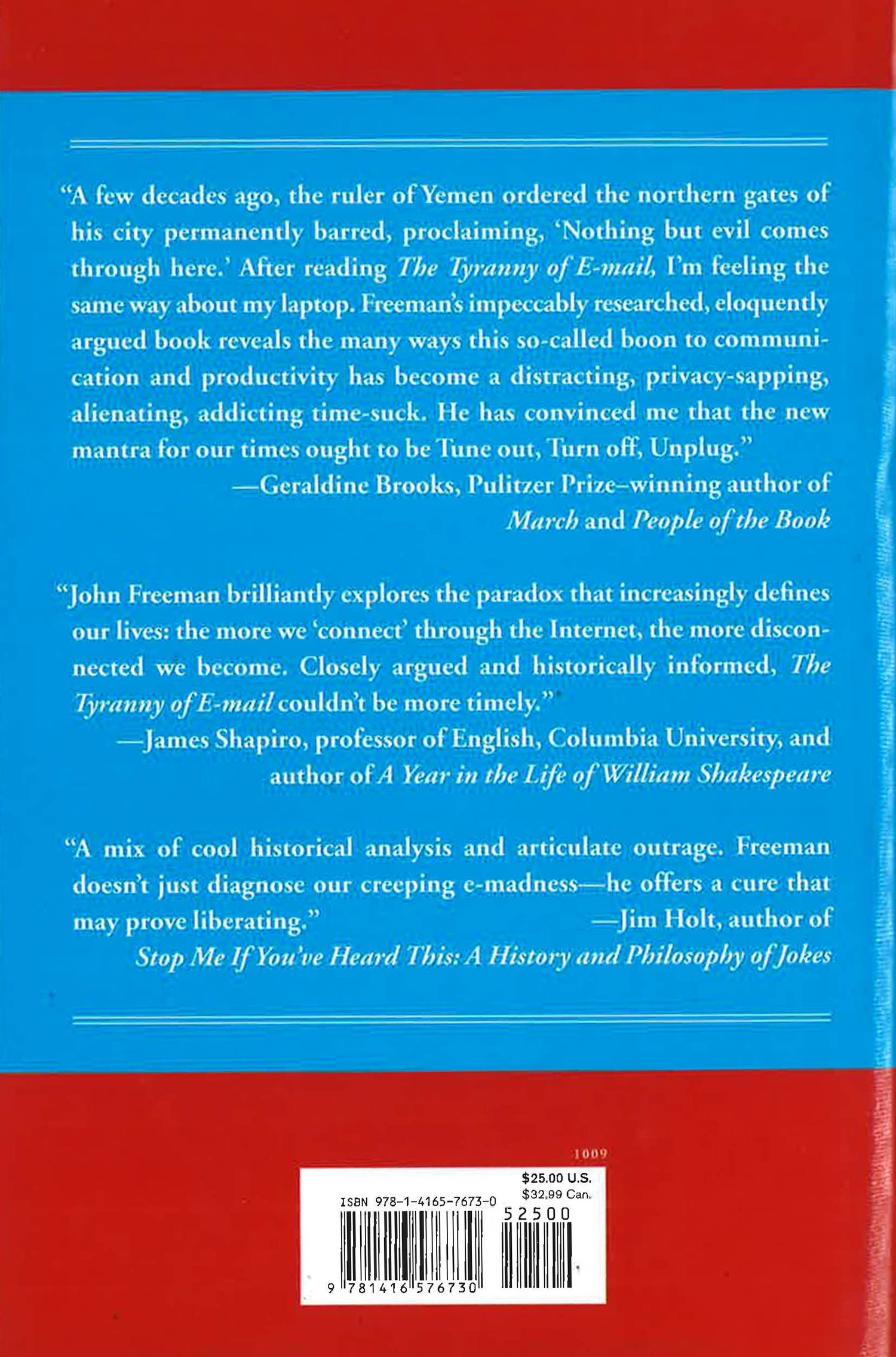 The award-winning president of the National Book Critics Circle examines the astonishing growth of emailand how it is changing our lives, not always for the better. John Freeman is one of Americas pre-eminent literary critics; now in this, his first book, he presents an elegant and erudite investigation into a technology that has revolutionized the way we work, communicate, and even think. Theres no question that email is an explosive phenomenon. The first email, developed for military use, was sent less than forty years ago; by 2011, there will be 3.2 billion users. The average corporate employee now receives upwards of 130 emails per day; by 2009 that number is expected to reach nearly 200. And the flood of messages is ceaseless: for increasing numbers of people, email means work now occupies home time as well as office hours. Drawing extensively on the research of linguists, behavioral scientists, cultural critics, and philosophers, Freeman examines the way email is taking a mounting toll on a variety of behavior, reducing time for leisure and contemplation, despoiling subtlety and expression in language, and separating us from each other in the unending and lonely battle with the overfull inbox. He enters a plea for communication which is slower, more nuanced, and, above all, more sociable.