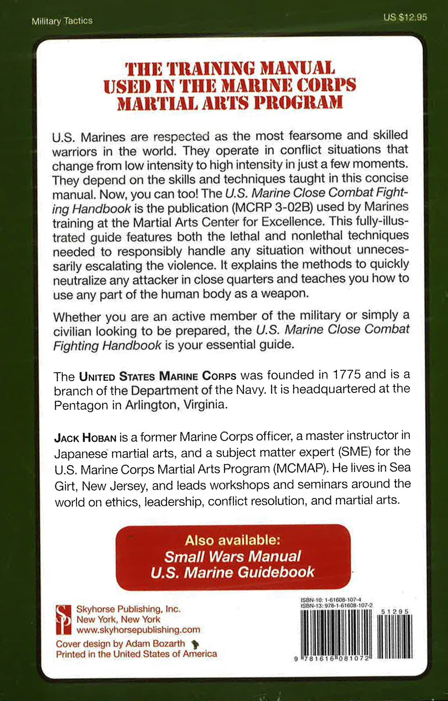 There are currently more than 200,000 active-duty U.S. Marines and another 40,000 in the reserves. These Marines depend on the skills and techniques taught in this concise manual-and now you can, too! This fully illustrated guide features the LINE (linear in-fighting neural-override engagement) system, which is designed to be learned and memorized through repetition. Once the techniques are fully acquired, they should be applied instinctively. The U.S. Marine Close Combat Fighting Handbook explains the methods to quickly neutralize any attacker in close quarters and teaches you how to use any part of the human body as a weapon. It covers breaking a fall, defending against headlocks and chokes, protecting against punches and kicks, surviving encounters with armed attackers, and more.