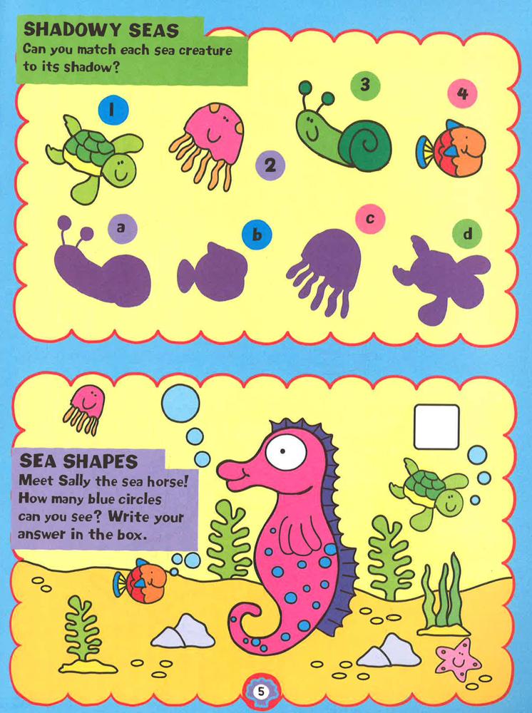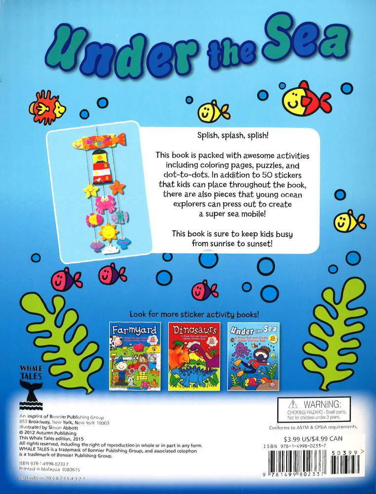 Splish, splash, splish! This book is packed with awesome activities including colouring pages, puzzles, and dot-to-dots. In addition to 50 stickers that kids can place throughout the book, there are also pieces that young ocean explorers can press out to create a super sea mobile! This book is sure to keep kids busy from sunrise to sunset!