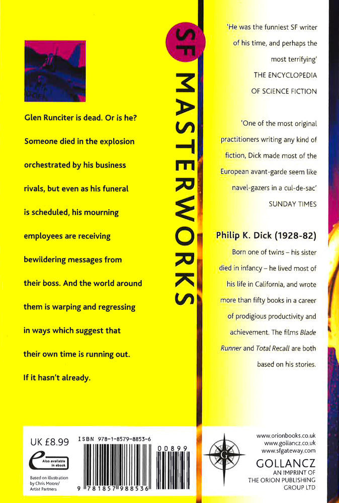 A classic tale of artificial worlds by one of the great SF writersGlen Runciter is dead.Or is he?Someone died in the explosion orchestrated by his business rivals, but even as his funeral is scheduled, his mourning employees are receiving bewildering messages from their boss. And the world around them is warping and regressing in ways which suggest that their own time is running out.If it hasn't already.